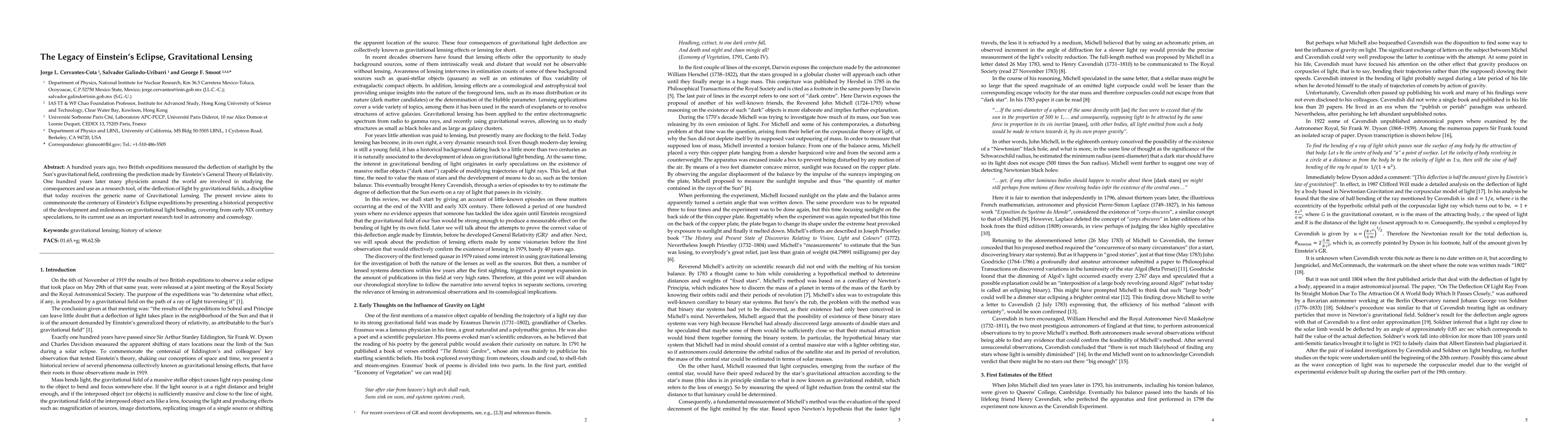 This paper commemorates the centenary of Einstein's 1919 eclipse expeditions that confirmed General Relativity by measuring starlight deflection, and reviews the evolution of gravitational lensing from early speculations to its current role as a vital research tool in astronomy and cosmology.