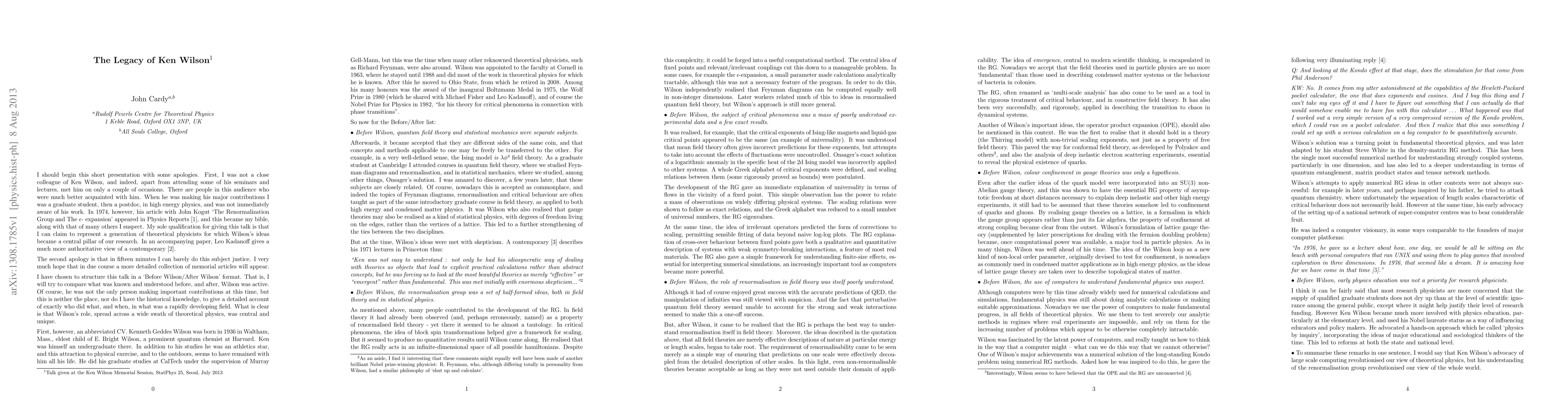 This is a brief account of the legacy of Ken Wilson in statistical physics, high energy physics, computing and education.