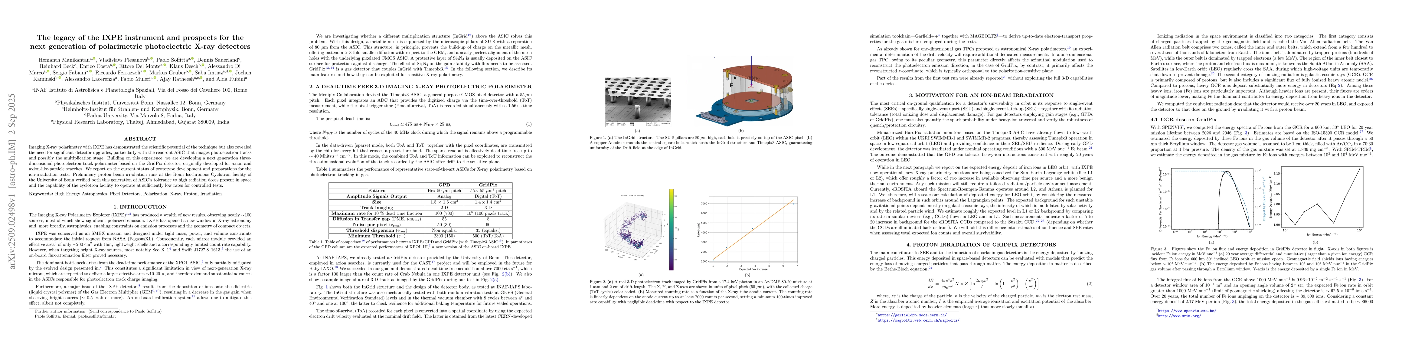 Imaging X-ray polarimetry with IXPE has demonstrated the scientific potential of the technique but also revealed the need for significant detector upgrades, particularly with the read-out ASIC that images photoelectron tracks and possibly the multiplication stage. Building on this experience, we are developing a next generation three-dimensional photoelectron track polarimeter based on the GridPix detector, originally developed for axion and axion-like-particle searches. We report on the current status of prototype development and preparations for the ion-irradiation tests. Preliminary proton beam irradiation runs at the Bonn Isochronous Cyclotron facility of the University of Bonn verified both this generation of ASIC's tolerance to high radiation doses present in space and the capability of the cyclotron facility to operate at sufficiently low rates for controlled tests.