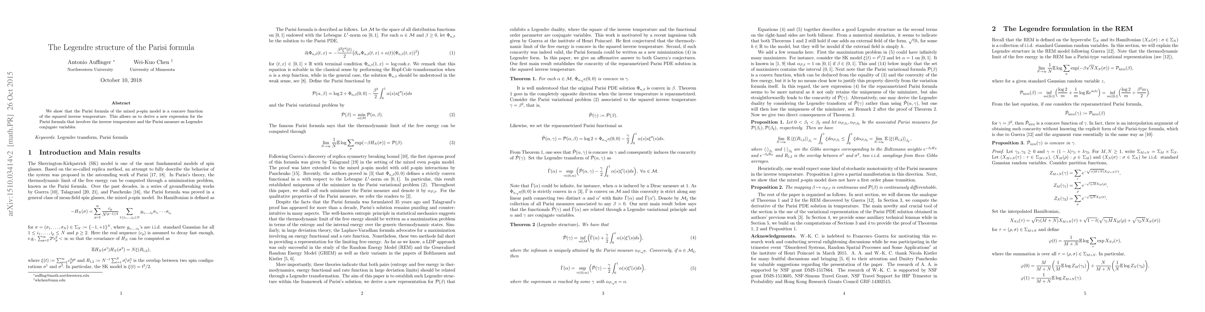 Summary: The paper demonstrates that the Parisi formula for the mixed $p$-spin model is a concave function of the inverse temperature, leading to a new expression that relates the inverse temperature and the Parisi measure as Legendre conjugate variables.