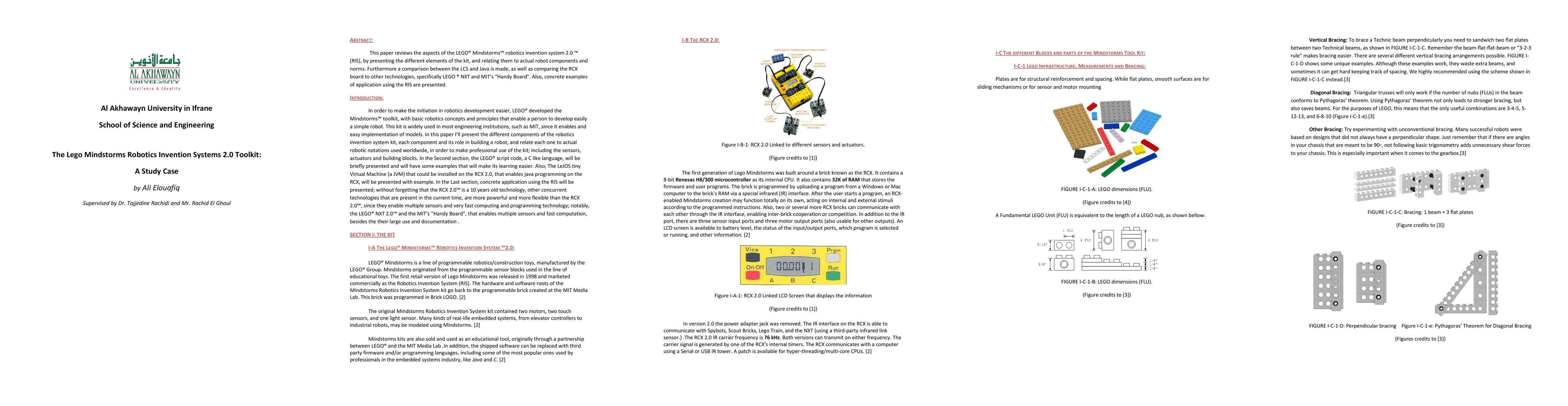 This paper examines the LEGO Mindstorms Robotics Invention System 2.0, detailing its components and comparing programming languages and microcontrollers to other technologies, while showcasing practical applications of the system.