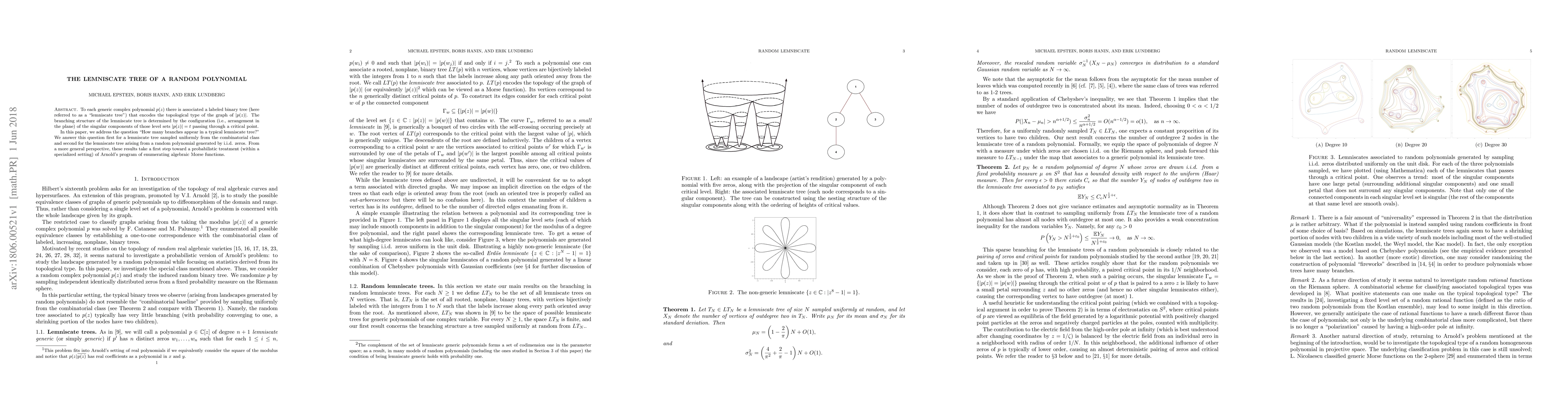 The paper investigates the structure of lemniscate trees, which encode topological information from complex polynomials. It finds that a typical tree has a certain number of branches in both uniformly sampled combinatorial cases and randomly generated polynomial scenarios.