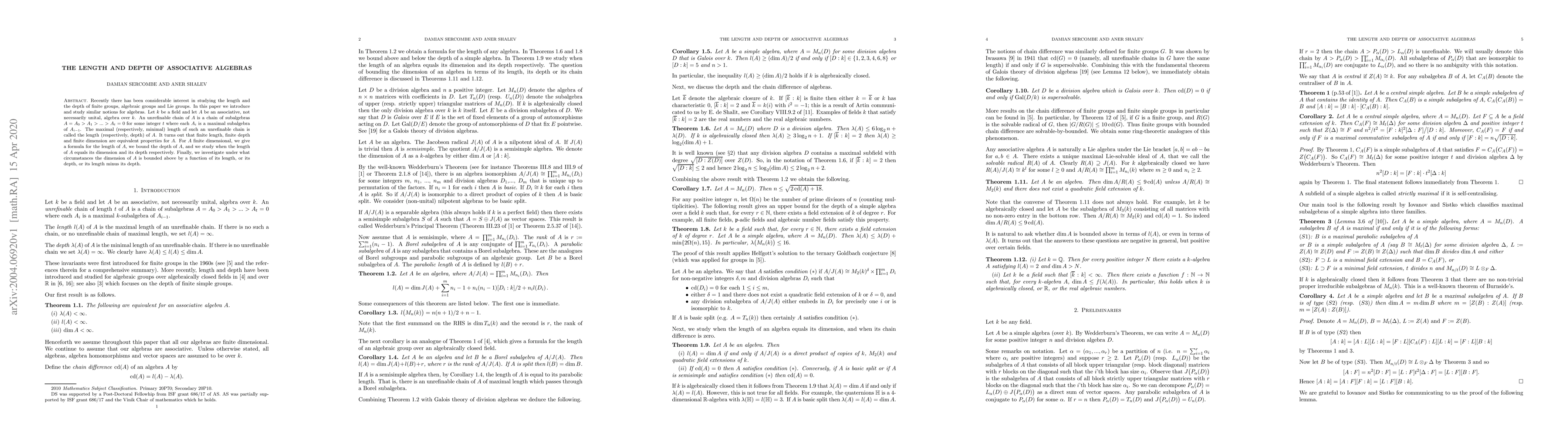 This paper introduces the concepts of length and depth for associative algebras, analogous to those for groups, and studies their properties. It finds that finite length, finite depth, and finite dimension are equivalent for such algebras, and provides formulas and bounds for these measures in finite-dimensional cases.