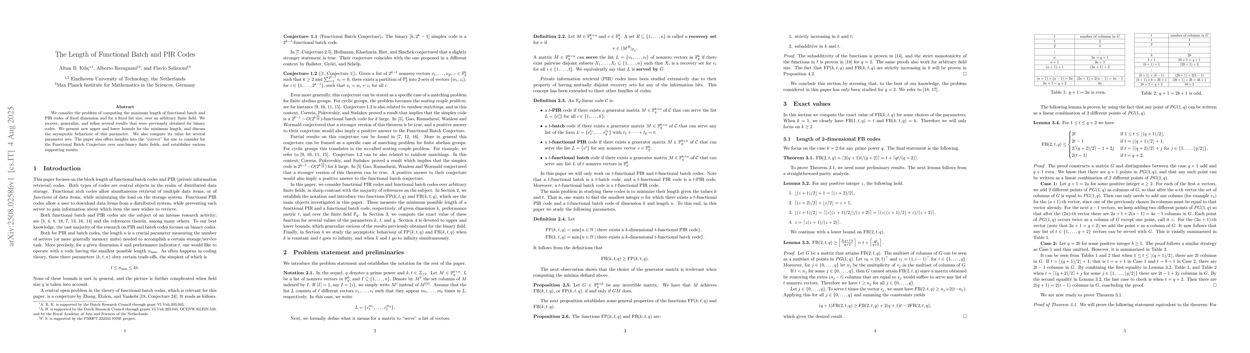 The paper presents new upper and lower bounds for the minimum length of functional batch and PIR codes, refines existing results, and discusses the asymptotic behavior of the minimum length parameter.