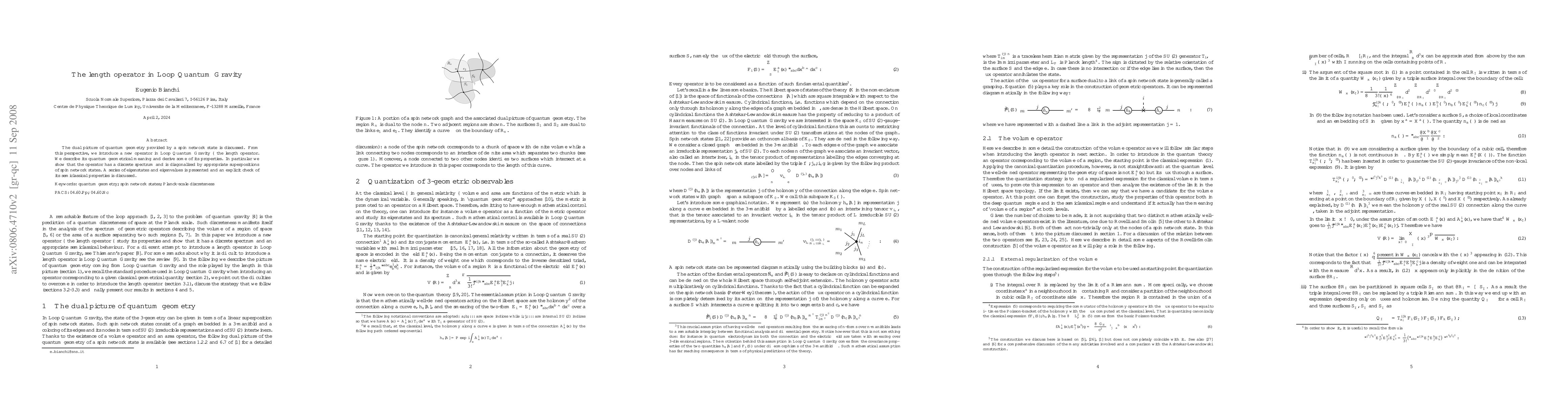 The dual picture of quantum geometry provided by a spin network state is discussed. From this perspective, we introduce a new operator in Loop Quantum Gravity - the length operator. We describe its quantum geometrical meaning and derive some of its properties. In particular we show that the operator has a discrete spectrum and is diagonalized by appropriate superpositions of spin network states. A series of eigenstates and eigenvalues is presented and an explicit check of its semiclassical properties is discussed.