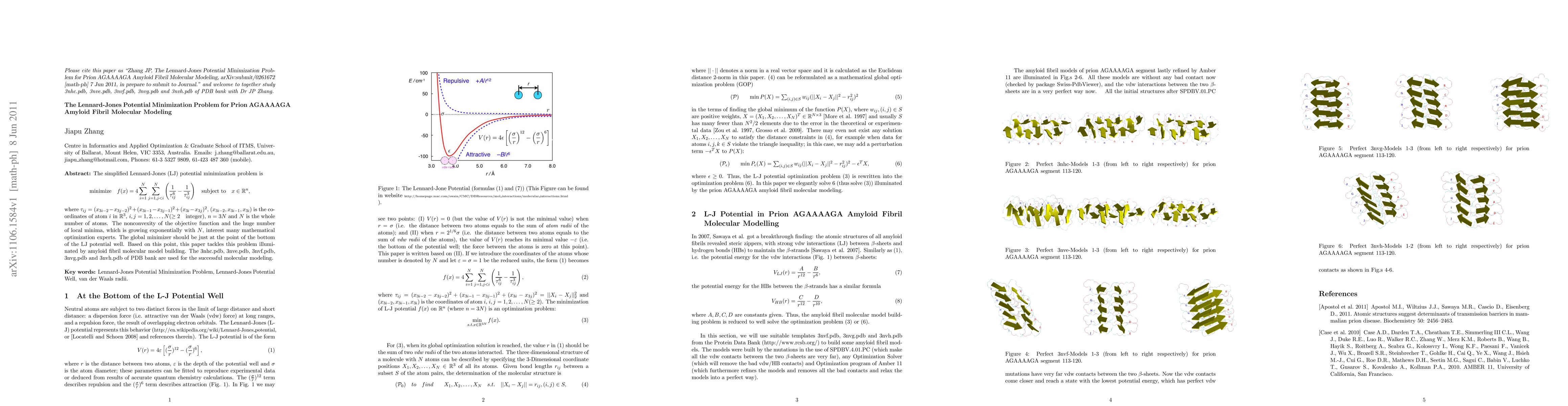 Researchers used Lennard-Jones potential minimization to model amyloid fibrils, finding that the global minimum occurs at the bottom of the potential well, and successfully modeled five PDB structures using this method.