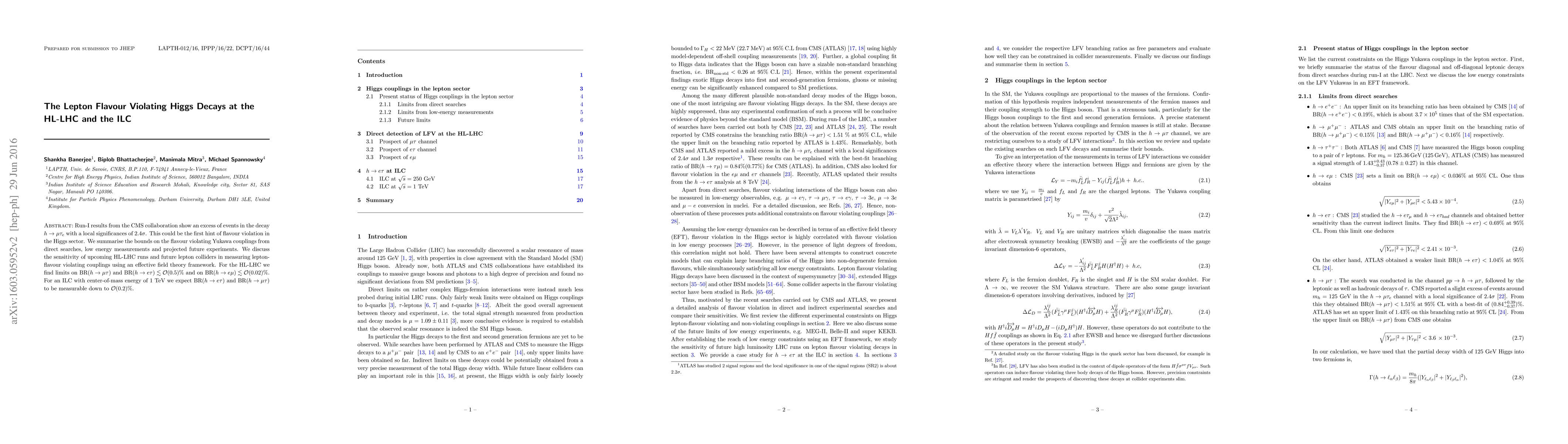 This paper investigates the potential for lepton flavour violating Higgs decays, highlighting a CMS collaboration observation of an excess in $h \to \mu \tau_e$ decay. It projects future sensitivities of the HL-LHC and ILC to measure these decays, finding HL-LHC can limit certain branching ratios to $\mathcal{O}(0.5)\%$ and the ILC at 1 TeV could measure them down to $\mathcal{O}(0.2)\%$.