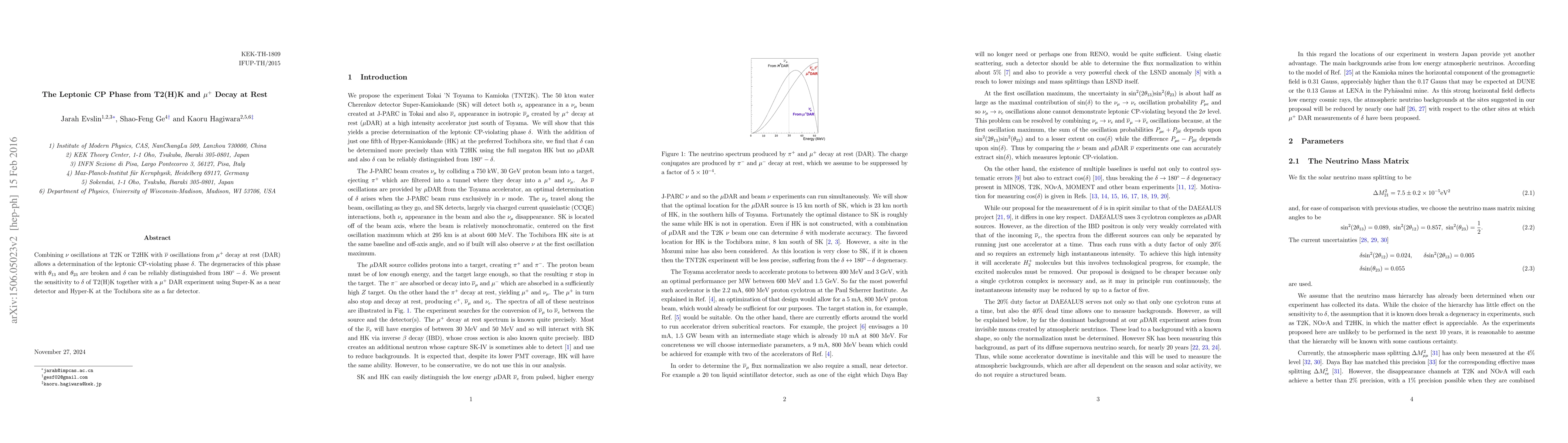 Combining neutrino oscillations at T2K or T2HK with antineutrinos oscillations from muon decay at rest (DAR) allows a determination of the leptonic CP-violating phase delta. The degeneracies of this phase with theta13 and theta23 are broken and delta can be reliably distinguished from 180-delta. We present the sensitivity to delta of T2(H)K together with a muon DAR experiment using Super-K as a near detector and Hyper-K at the Tochibora site as a far detector.
