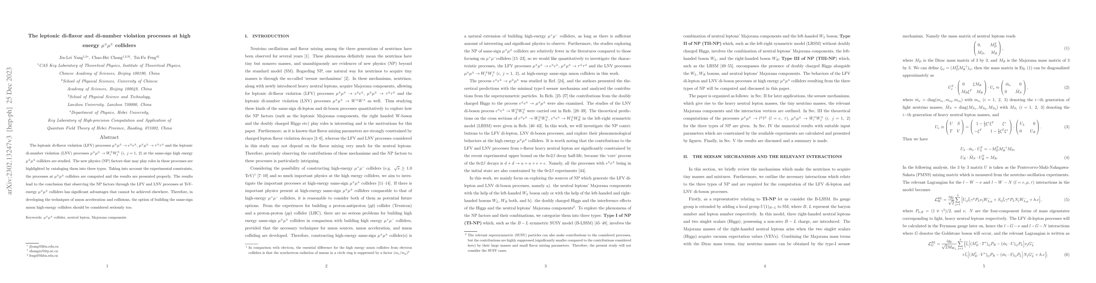The leptonic di-flavor violation (LFV) processes $\mu^\pm \mu^\pm \rightarrow e^\pm e^\pm $, $\mu^\pm \mu^\pm \rightarrow \tau^\pm \tau^\pm $ and the leptonic di-number violation (LNV) processes $\mu^\pm \mu^\pm \rightarrow W^\pm _iW^\pm _j$ ($i,\;j=1,\;2$) at the same-sign high energy $\mu^\pm \mu^\pm $ colliders are studied. The new physics (NP) factors that may play roles in these processes are highlighted by cataloging them into three types. Taking into account the experimental constraints, the processes at $\mu^\pm\mu^\pm$ colliders are computed and the results are presented properly. The results lead to the conclusion that observing the NP factors through the LFV and LNV processes at TeV-energy $\mu^\pm\mu^\pm$ colliders has significant advantages that cannot be achieved elsewhere. Therefore, in developing the techniques of muon acceleration and collisions, the option of building the same-sign muon high-energy colliders should be considered seriously too.
