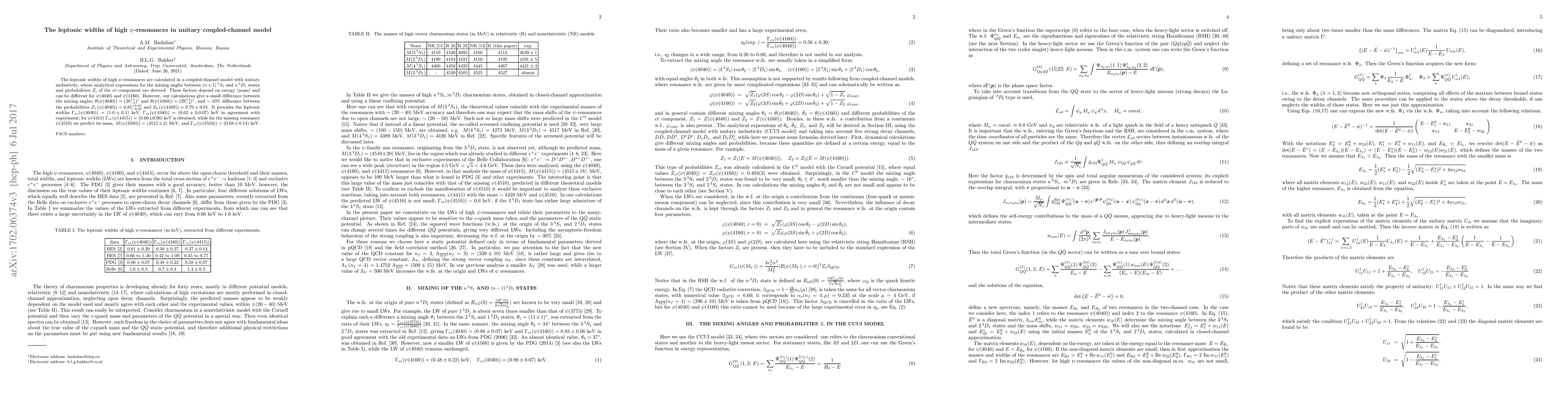 The leptonic widths of high $\psi$-resonances are calculated in a coupled-channel model with unitary inelasticity, where analytical expressions for mixing angles between $(n+1)\,^3S_1$ and $n\,^3D_1$ states and probabilities $Z_i$ of the $c\bar c$ component are derived. Since these factors depend on energy (mass), different values of mixing angles $\theta(\psi(4040))=27.7^\circ$ and $\theta(\psi(4160))=29.5^\circ$, $Z_1\,(\psi(4040))=0.76$, and $Z_2\,(\psi(4160))=0.62$ are obtained. It gives the leptonic widths $\Gamma_{ee}(\psi(4040))=Z_1\, 1.17=0.89$~keV, $\Gamma_{ee}(\psi(4160))=Z_2\, 0.76=0.47$~keV in good agreement with experiment. For $\psi(4415)$ the leptonic width $\Gamma_{ee}(\psi(4415))=~0.55$~keV is calculated, while for the missing resonance $\psi(4510)$ we predict $M(\psi(4500))=(4515\pm 5)$~MeV and $\Gamma_{ee}(\psi(4510)) \cong 0.50$~keV.
