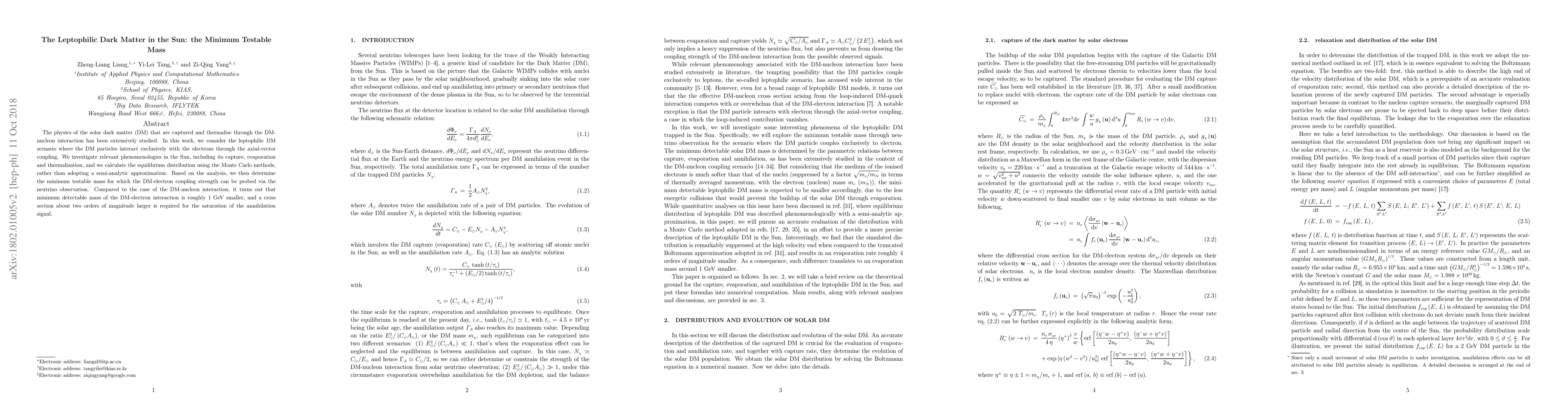 The physics of the solar dark matter (DM) that are captured and thermalise through the DM-nucleon interaction has been extensively studied. In this work, we consider the leptophilic DM scenario where the DM particles interact exclusively with the electrons through the axial-vector coupling. We investigate relevant phenomenologies in the Sun, including its capture, evaporation and thermalisation, and we calculate the equilibrium distribution using the Monte Carlo methods, rather than adopting a semi-analytic approximation. Based on the analysis, we then determine the minimum testable mass for which the DM-electron coupling strength can be probed via the neutrino observation. Compared to the case of the DM-nucleon interaction, it turns out that minimum detectable mass of the DM-electron interaction is roughly 1 GeV smaller, and a cross section about two orders of magnitude larger is required for the saturation of the annihilation signal.