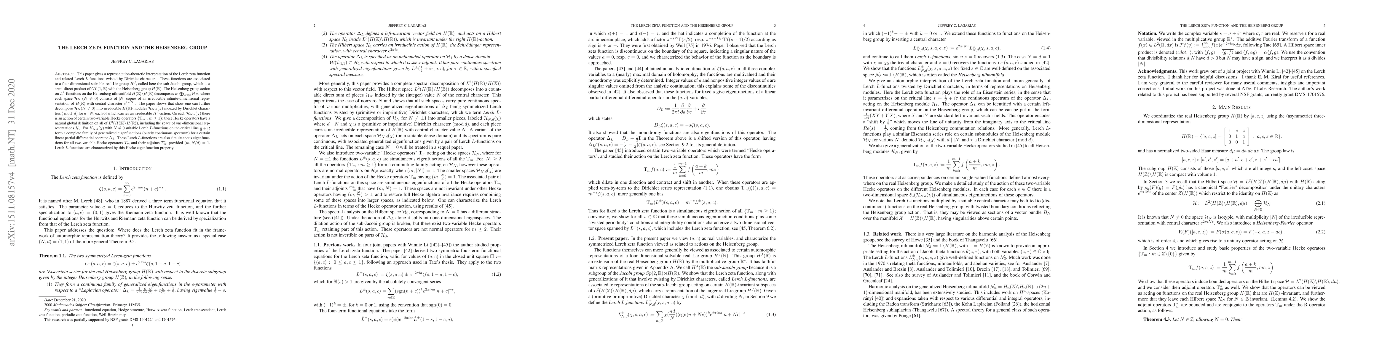 This paper gives a representation-theoretic interpretation of the Lerch zeta function and related Lerch $L$-functions twisted by Dirichlet characters. These functions are associated to a four-dimensional solvable real Lie group $H^{J}$, called here the sub-Jacobi group, which is a semi-direct product of $GL(1, {\mathbb R})$ with the Heisenberg group $H({\mathbb R})$. The Heisenberg group action on L^2-functions on the Heisenberg nilmanifold $H({\mathbb Z}) \backslash H({\mathbb R})$ decomposes as $\bigoplus_{N \in {\mathbb Z}} H_N$, where each space $H_N~ (N \neq 0)$ consists of $|N|$ copies of an irreducible representation of $H({\mathbb R})$ with central character $e^{2 \pi i Nz}$. The paper shows that show one can further decompose $H_N (N \ne 0)$ into irreducible $H({\mathbb R})$-modules $H_{N,d}(\chi)$ indexed by Dirichlet characters $(\bmod~ d)$ for $d \mid N$, each of which carries an irreducible $H^J$-action. On each $H_{N,d}(\chi)$ there is an action of certain two-variable Hecke operators $\{T_m: m \ge 1\}$; these Hecke operators have a natural global definition on all of $L^2(H({\mathbb Z})\backslash H({\mathbb R}))$, including the space of one-dimensional representations $H_0$. For $H_{N,d}(\chi)$ with $N \neq 0$ suitable Lerch $L$-functions on the critical line $\frac{1}{2} + it$ form a complete family of generalized eigenfunctions (pure continuous spectrum) for a certain linear partial differential operator $\Delta_L$. These Lerch $L$-functions are also simultaneous eigenfunctions for all two-variable Hecke operators $T_m$ and their adjoints $T_m^{\ast}$, provided $(m, N/d) = 1$. Lerch $L$-functions are characterized by this Hecke eigenfunction property.