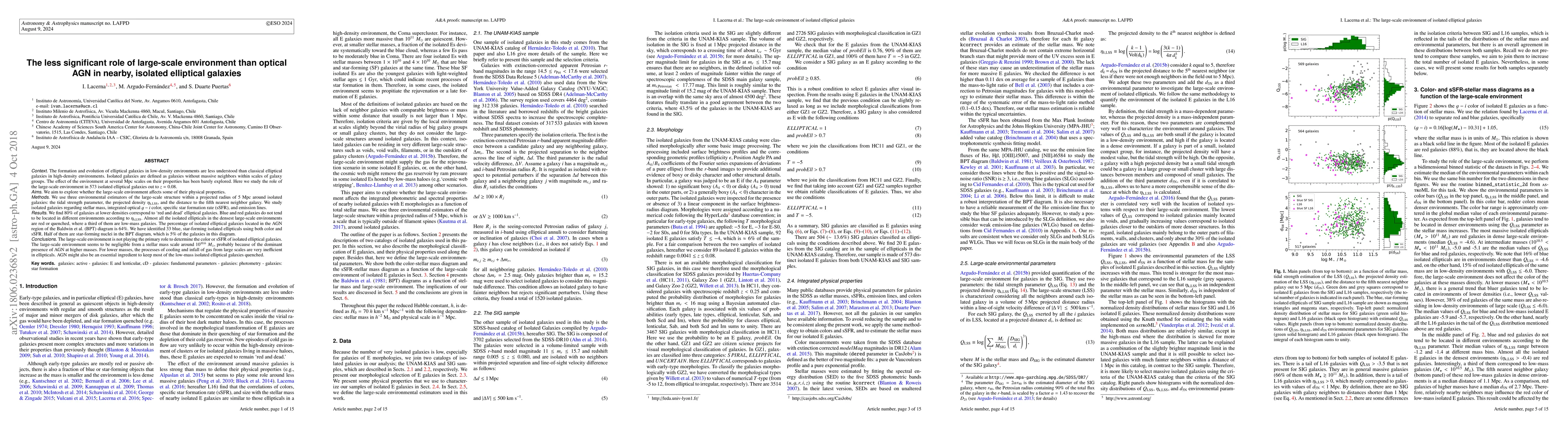 This study investigates the influence of large-scale environments on the properties of isolated elliptical galaxies, finding that large-scale environments play a minor role compared to the presence of Active Galactic Nuclei (AGN). The research concludes that AGN activity is a dominant factor in determining the color and star-formation rate of these galaxies, overshadowing the effects of the large-scale environment.