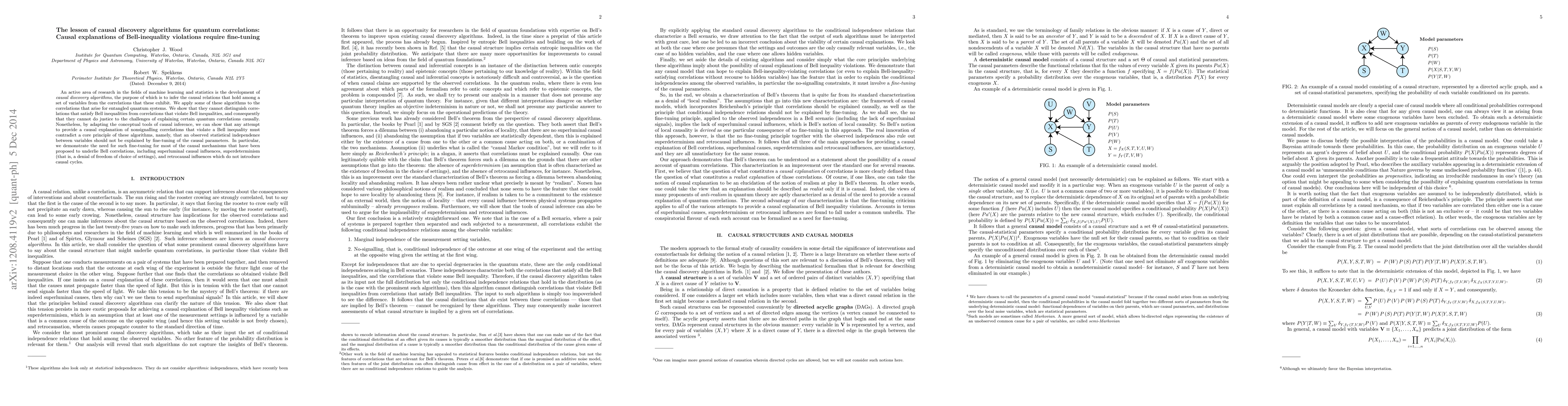 An active area of research in the fields of machine learning and statistics is the development of causal discovery algorithms, the purpose of which is to infer the causal relations that hold among a set of variables from the correlations that these exhibit. We apply some of these algorithms to the correlations that arise for entangled quantum systems. We show that they cannot distinguish correlations that satisfy Bell inequalities from correlations that violate Bell inequalities, and consequently that they cannot do justice to the challenges of explaining certain quantum correlations causally. Nonetheless, by adapting the conceptual tools of causal inference, we can show that any attempt to provide a causal explanation of nonsignalling correlations that violate a Bell inequality must contradict a core principle of these algorithms, namely, that an observed statistical independence between variables should not be explained by fine-tuning of the causal parameters. In particular, we demonstrate the need for such fine-tuning for most of the causal mechanisms that have been proposed to underlie Bell correlations, including superluminal causal influences, superdeterminism (that is, a denial of freedom of choice of settings), and retrocausal influences which do not introduce causal cycles.