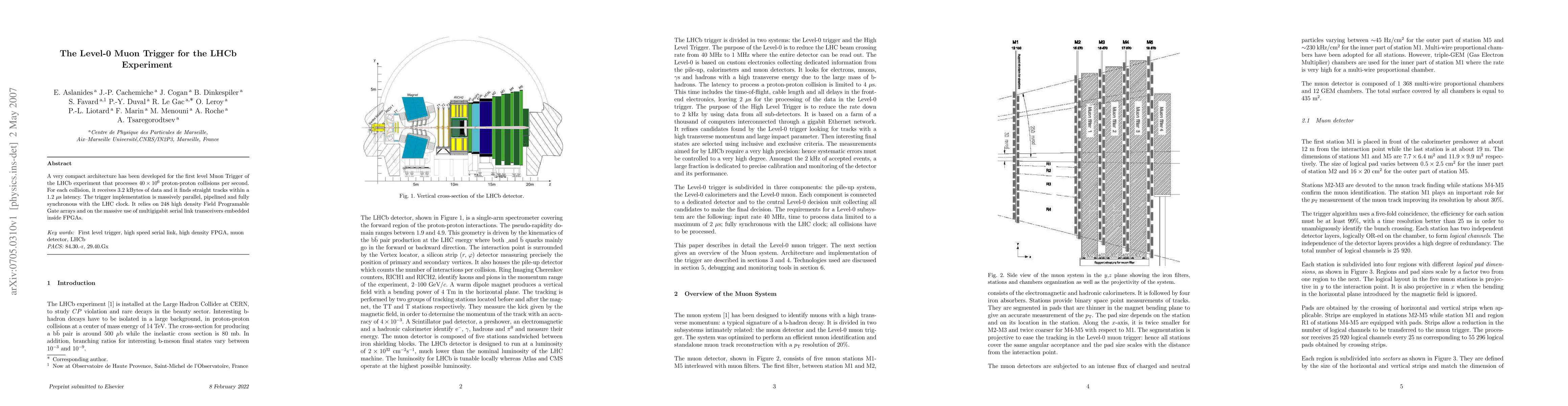 The LHCb experiment's Level-0 Muon Trigger employs a compact, massively parallel architecture to process 40 million proton-proton collisions per second with a 1.2 microsecond latency, utilizing 248 FPGAs and high-speed serial link transceivers. The trigger system is fully synchronous with the LHC clock and handles 3.2 kBytes of data per collision.