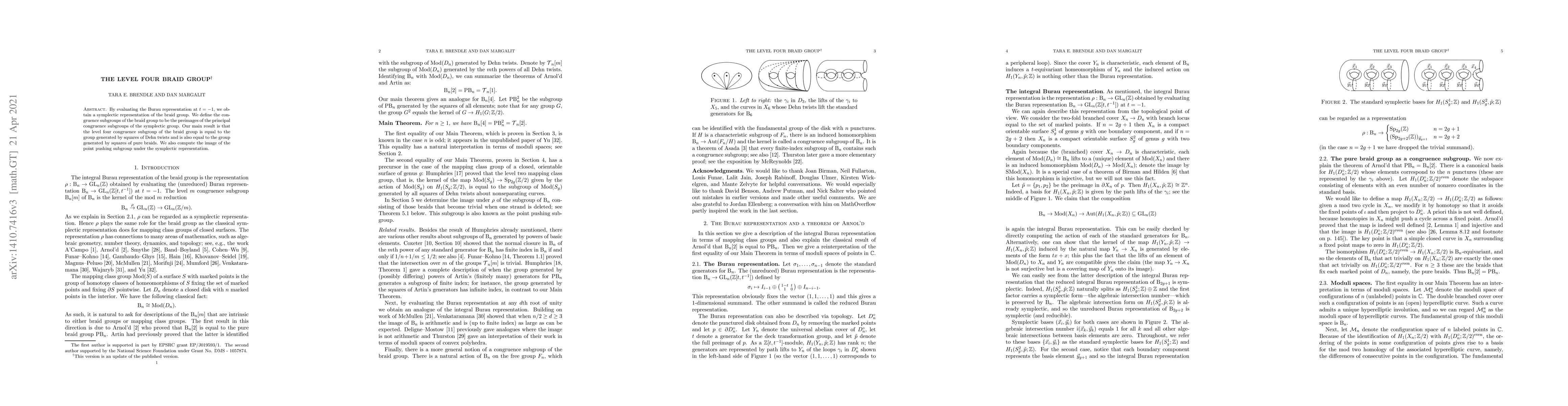 This paper studies the level four braid group through its Burau representation, showing it equates to groups generated by squares of Dehn twists and pure braids. It also determines the image of the point pushing subgroup under the symplectic representation.