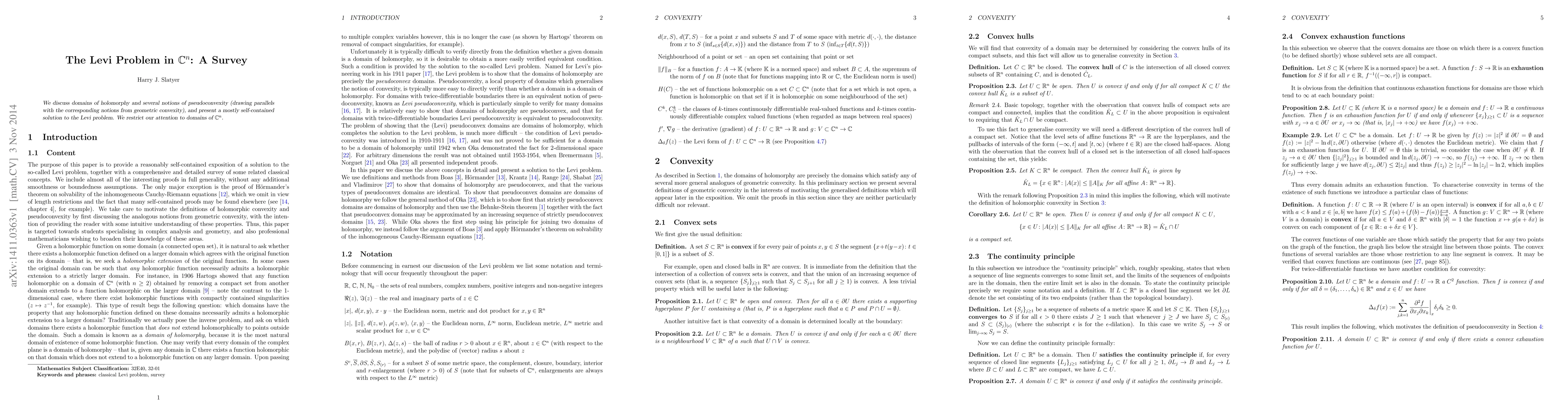 This paper discusses domains of holomorphy in complex n-dimensional space, presenting a solution to the Levi problem and exploring notions of pseudoconvexity with parallels to geometric convexity.