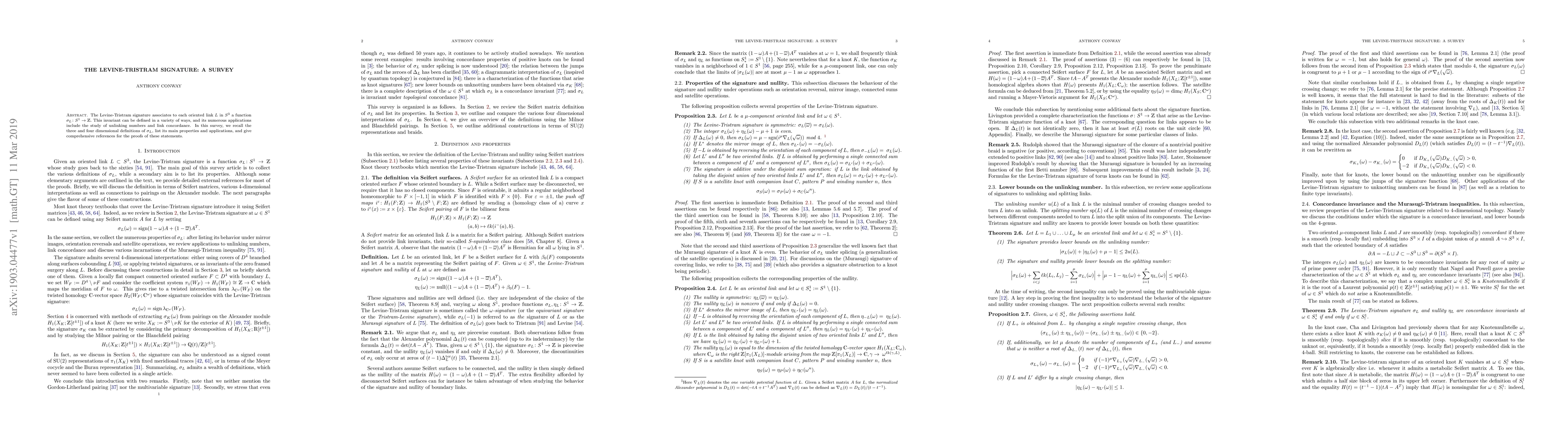 The Levine-Tristram signature $\sigma_L$ is an invariant linking oriented knots and links in $S^3$ to functions $\sigma_L \colon S^1 \to \mathbb{Z}$, with applications in studying unlinking numbers and link concordance, as detailed in this survey.