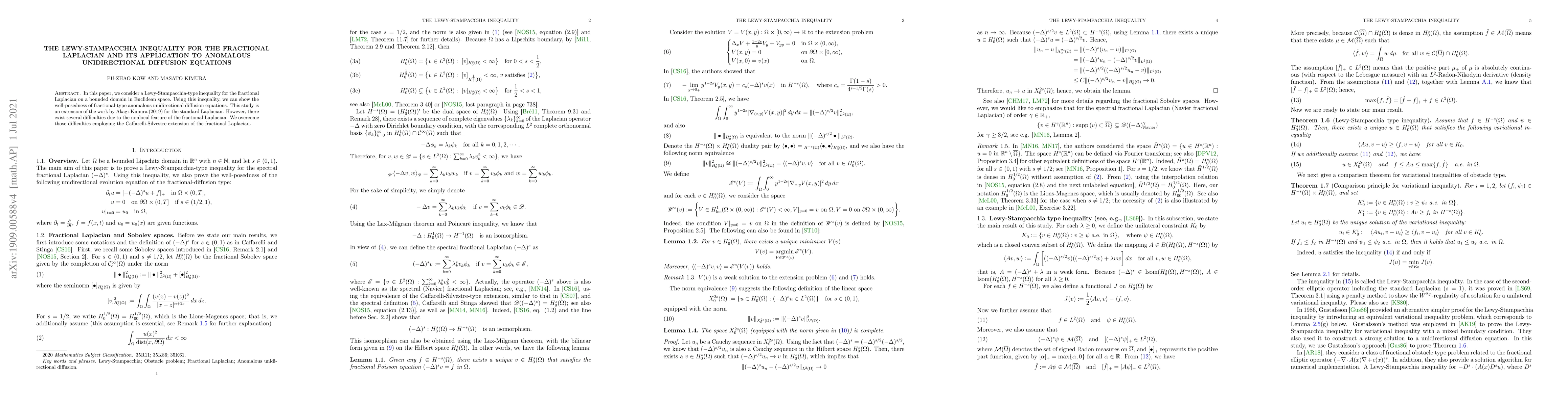 This paper establishes a Lewy-Stampacchia-type inequality for the fractional Laplacian, extending previous results for the standard Laplacian. It leverages this inequality to demonstrate the well-posedness of anomalous unidirectional diffusion equations, overcoming challenges posed by the fractional Laplacian's nonlocal nature.