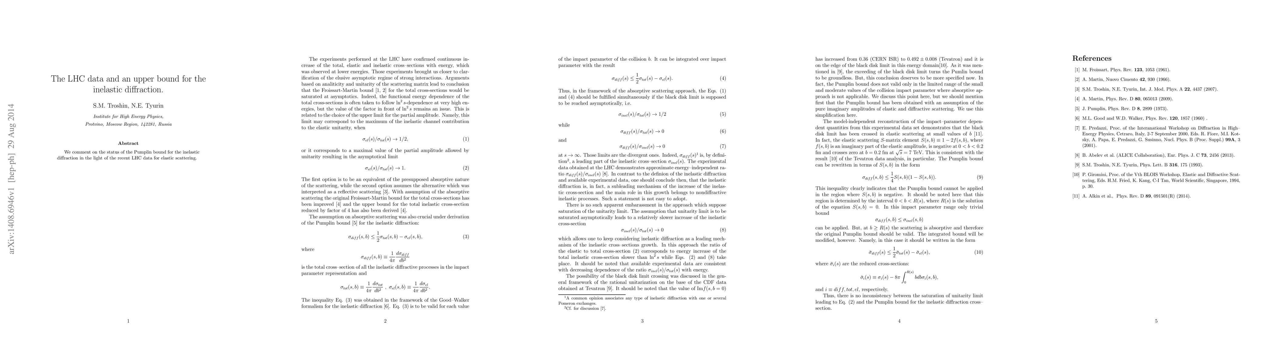 Summary: This paper discusses the implications of recent Large Hadron Collider (LHC) data on elastic scattering for the Pumplin bound, which sets an upper limit for inelastic diffraction processes. It evaluates whether the LHC findings support or challenge this established theoretical limit.