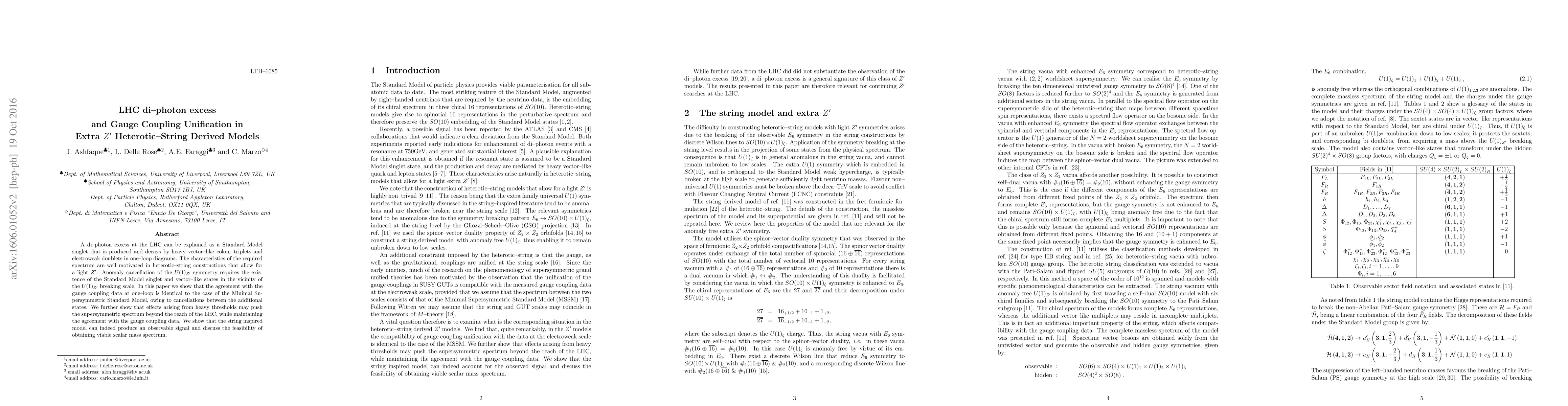 The paper presents a detailed analysis of gauge coupling unification in extra $Z'$ heterotic-string derived models, demonstrating their potential to explain the LHC di-photon excess.