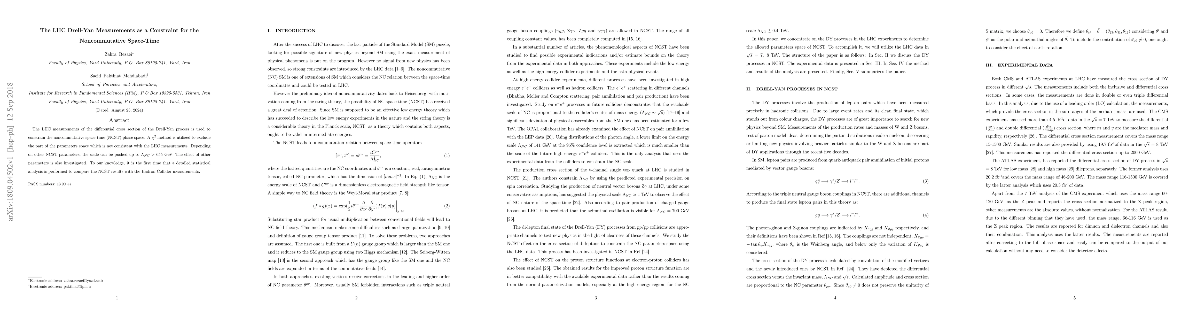 The LHC measurements of the differential cross section of the Drell-Yan process is used to constrain the noncommutative space-time (NCST) phase space. A $\chi^2$ method is utilized to exclude the part of the parameters space which is not consistent with the LHC measurements. Depending on other NCST parameters, the scale can be pushed up to $\Lambda_{NC} > 655$ GeV. The effect of other parameters is also investigated. To our knowledge, it is the first time that a detailed statistical analysis is performed to compare the NCST results with the Hadron Collider measurements.