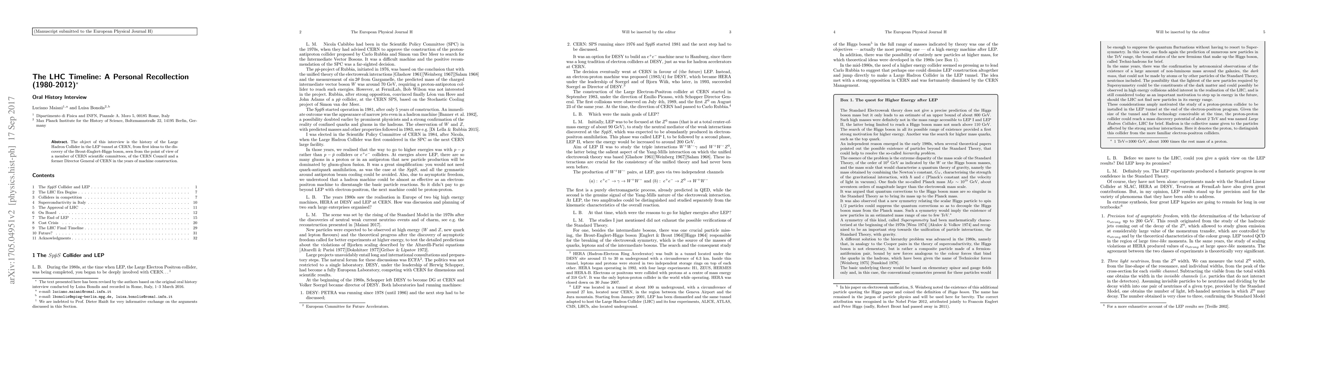 The object of this interview is the history of the Large Hadron Collider in the LEP tunnel at CERN, from first ideas to the discovery of the Brout-Englert-Higgs boson, seen from the point of view of a member of CERN scientific committees, of the CERN Council and a former Director General of CERN in the years of machine construction