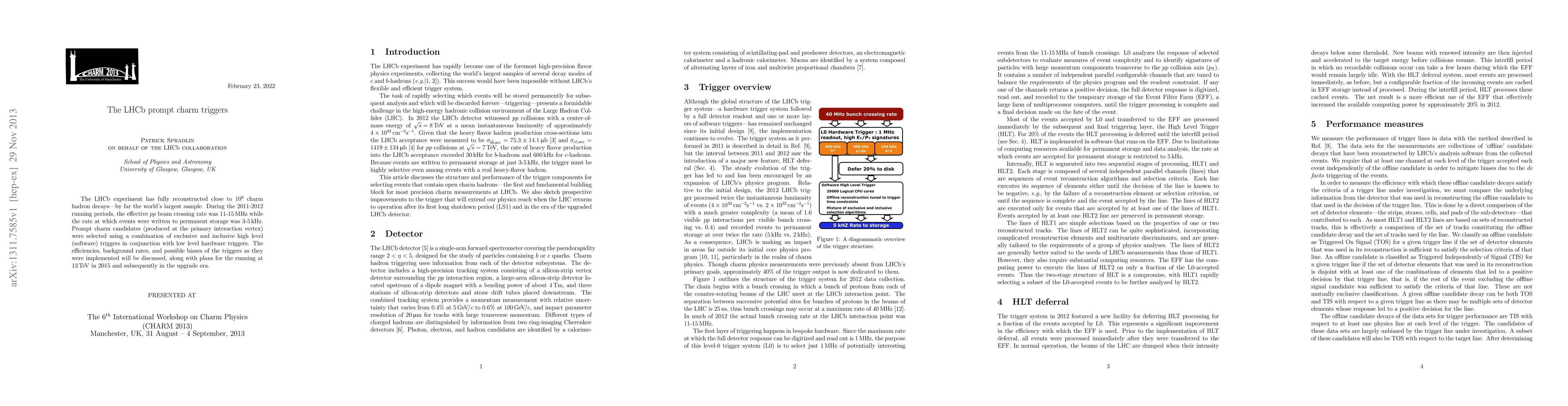 The LHCb experiment reconstructed nearly 10^9 charm hadron decays, utilizing a combination of hardware and software triggers to select prompt charm candidates. The study discusses trigger efficiencies, background rates, and biases, and outlines future plans for higher energy runs.