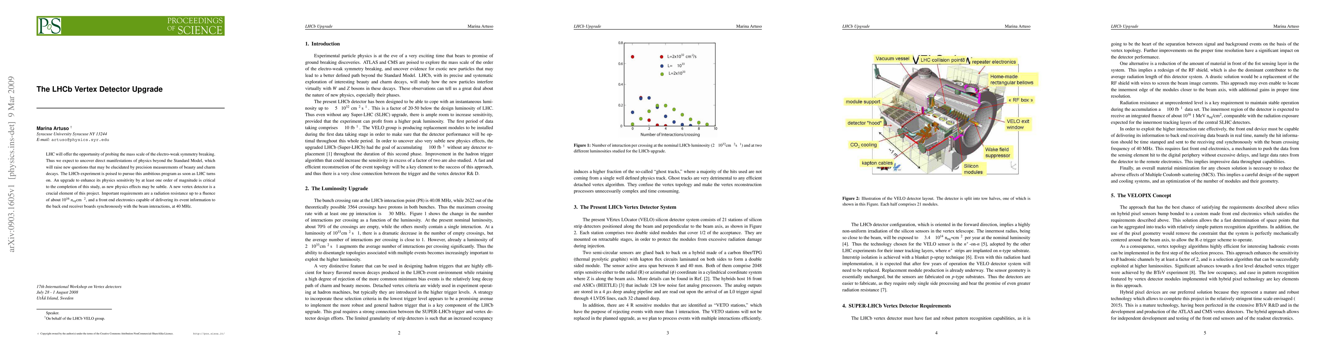 LHC will offer the opportunity of probing the mass scale of the electro-weak symmetry breaking. Thus we expect to uncover direct manifestations of physics beyond the Standard Model, which will raise new questions that may be elucidated by precision measurements of beauty and charm decays. The LHCb experiment is poised to pursue this ambitious program as soon as LHC turns on. An upgrade to enhance its physics sensitivity by at least one order of magnitude is critical to the completion of this study, as new physics effects may be subtle. A new vertex detector is a crucial element of this project. Important requirements are a radiation resistance up to a fluence of about 10$^{16} n_{eq} {\rm cm}^{-2}$, and a front end electronics capable of delivering its event information to the back end receiver boards synchronously with the beam interactions, at 40 MHz.