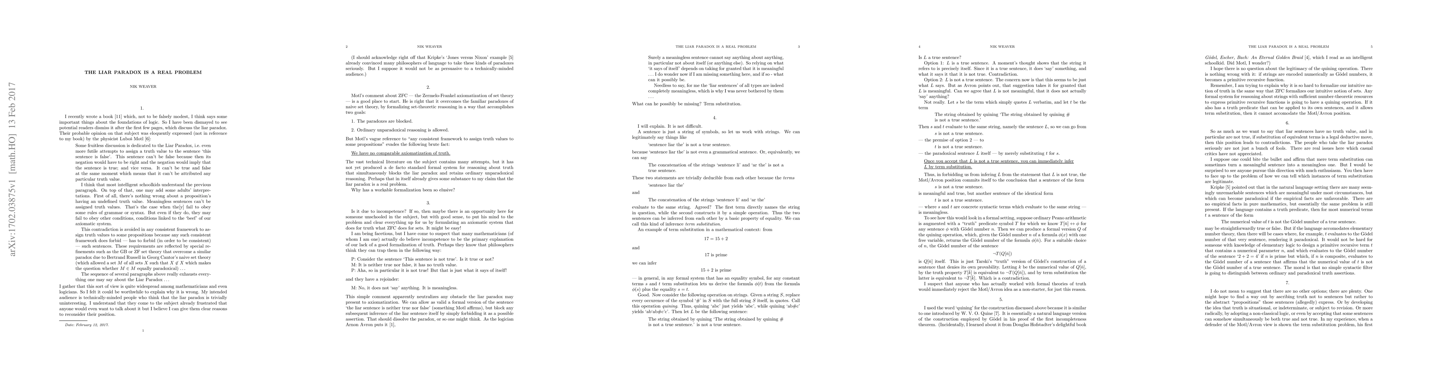 Summary: This paper argues against the common dismissal of the liar paradox as insignificant, presenting a compelling case for its serious implications and challenging the prevailing view that it is merely a linguistic curiosity.