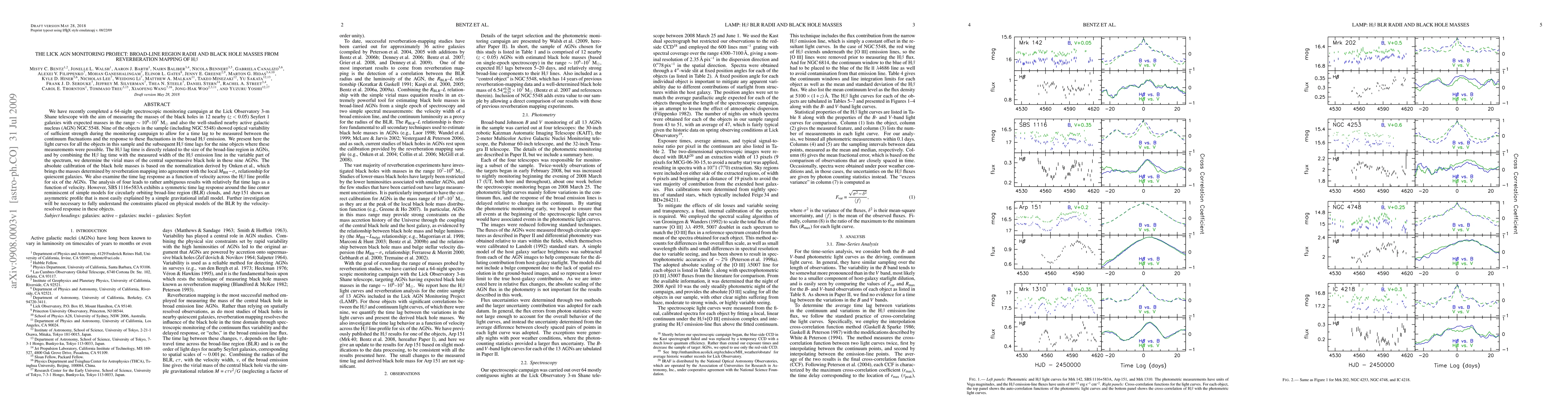 Researchers measured black hole masses in 12 nearby galaxies using a spectroscopic monitoring campaign, finding that Hbeta time lags directly relate to broad-line region size and allowing for mass estimates.