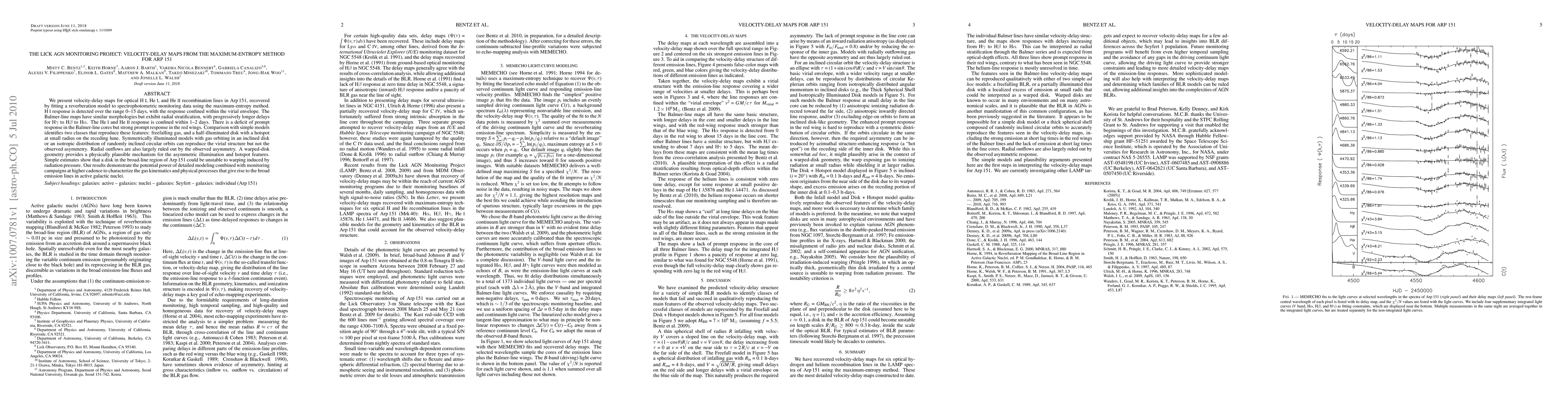 We present velocity-delay maps for optical H I, He I, and He II recombination lines in Arp 151, recovered by fitting a reverberation model to spectrophotometric monitoring data using the maximum-entropy method. H I response is detected over the range 0-15 days, with the response confined within the virial envelope. The Balmer-line maps have similar morphologies but exhibit radial stratification, with progressively longer delays for Hgamma to Hbeta to Halpha. The He I and He II response is confined within 1-2 days. There is a deficit of prompt response in the Balmer-line cores but strong prompt response in the red wings. Comparison with simple models identifies two classes that reproduce these features: freefalling gas, and a half-illuminated disk with a hotspot at small radius on the receding lune. Symmetrically illuminated models with gas orbiting in an inclined disk or an isotropic distribution of randomly inclined circular orbits can reproduce the virial structure but not the observed asymmetry. Radial outflows are also largely ruled out by the observed asymmetry. A warped-disk geometry provides a physically plausible mechanism for the asymmetric illumination and hotspot features. Simple estimates show that a disk in the broad-line region of Arp 151 could be unstable to warping induced by radiation pressure. Our results demonstrate the potential power of detailed modeling combined with monitoring campaigns at higher cadence to characterize the gas kinematics and physical processes that give rise to the broad emission lines in active galactic nuclei.