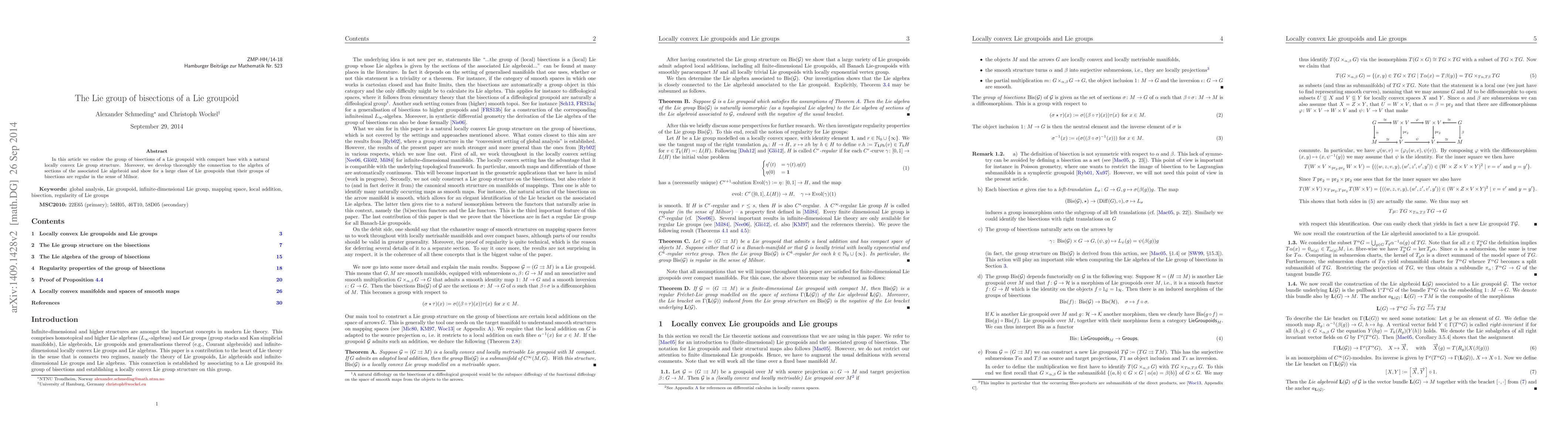 This paper establishes a locally convex Lie group structure on the group of bisections of a compact-based Lie groupoid and explores its connection to the associated Lie algebroid's algebra, proving that for many Lie groupoids, their bisection groups are regular.