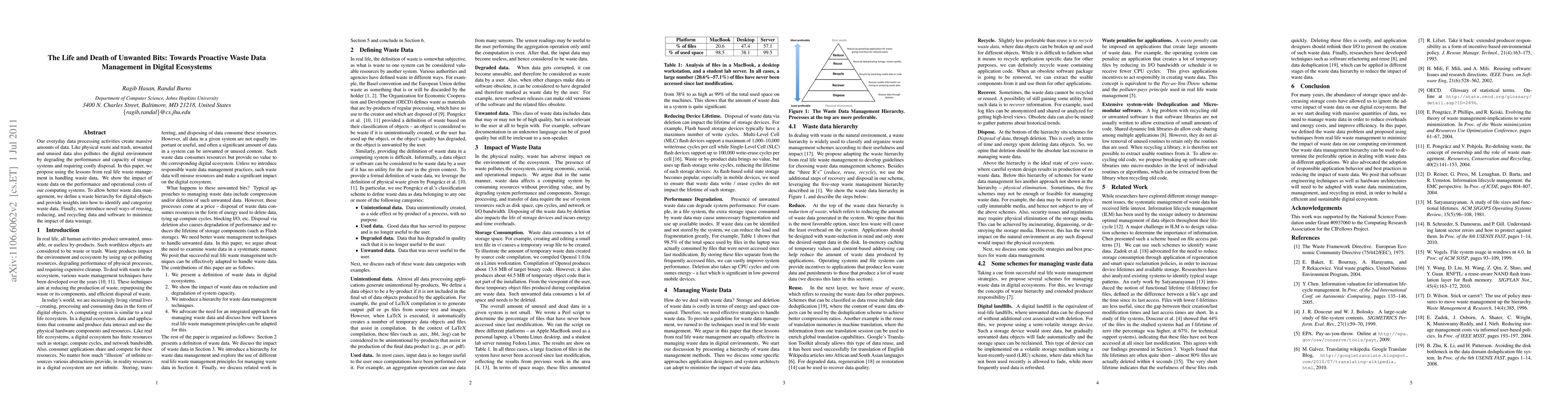Our everyday data processing activities create massive amounts of data. Like physical waste and trash, unwanted and unused data also pollutes the digital environment by degrading the performance and capacity of storage systems and requiring costly disposal. In this paper, we propose using the lessons from real life waste management in handling waste data. We show the impact of waste data on the performance and operational costs of our computing systems. To allow better waste data management, we define a waste hierarchy for digital objects and provide insights into how to identify and categorize waste data. Finally, we introduce novel ways of reusing, reducing, and recycling data and software to minimize the impact of data wastage