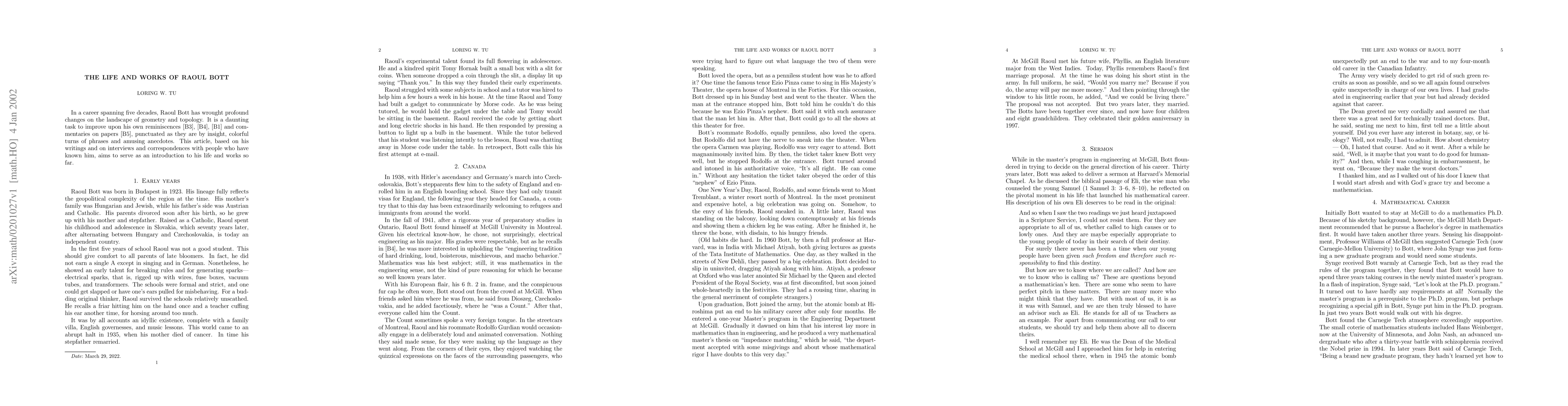 a 10-page biography of Raoul Bott followed by a 25-page discussion of his major papers