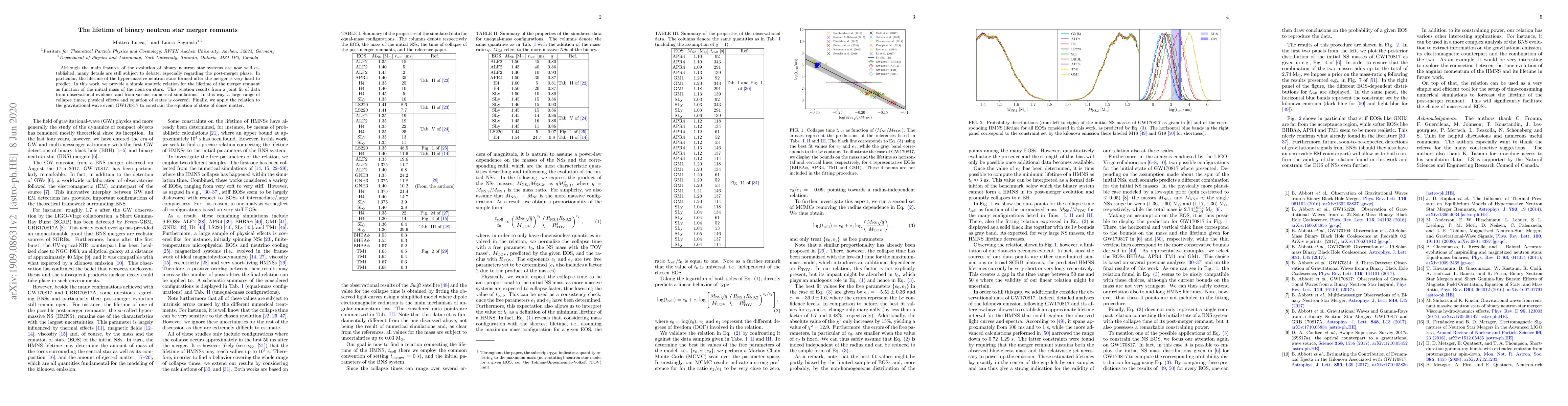 Although the main features of the evolution of binary neutron star systems are now well established, many details are still subject to debate, especially regarding the post-merger phase. In particular, the lifetime of the hyper-massive neutron stars formed after the merger is very hard to predict. In this work, we provide a simple analytic relation for the lifetime of the merger remnant as function of the initial mass of the neutron stars. This relation results from a joint fit of data from observational evidence and from various numerical simulations. In this way, a large range of collapse times, physical effects and equation of states is covered. Finally, we apply the relation to the gravitational wave event GW170817 to constrain the equation of state of dense matter.