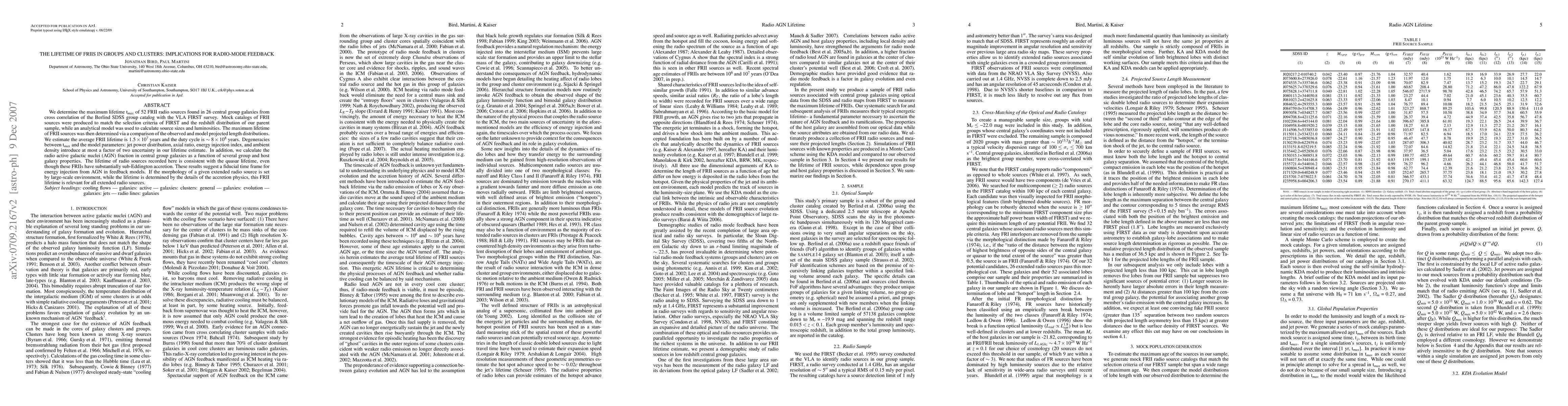 We determine the maximum lifetime t_max of 52 FRII radio sources found in 26 central group galaxies from cross correlation of the Berlind SDSS group catalog with the VLA FIRST survey. Mock catalogs of FRII sources were produced to match the selection criteria of FIRST and the redshift distribution of our parent sample, while an analytical model was used to calculate source sizes and luminosities. The maximum lifetime of FRII sources was then determined via a comparison of the observed and model projected length distributions. We estimate the average FRII lifetime is 1.5x10^7 years and the duty cycle is ~8x10^8 years. Degeneracies between t_max and the model parameters: jet power distribution, axial ratio, energy injection index, and ambient density introduce at most a factor of two uncertainty in our lifetime estimate. In addition, we calculate the radio active galactic nuclei (AGN) fraction in central group galaxies as a function of several group and host galaxy properties. The lifetime of radio sources recorded here is consistent with the quasar lifetime, even though these FRIIs have substantially sub-Eddington accretion. These results suggest a fiducial time frame for energy injection from AGN in feedback models. If the morphology of a given extended radio source is set by large-scale environment, while the lifetime is determined by the details of the accretion physics, this FRII lifetime is relevant for all extended radio sources.