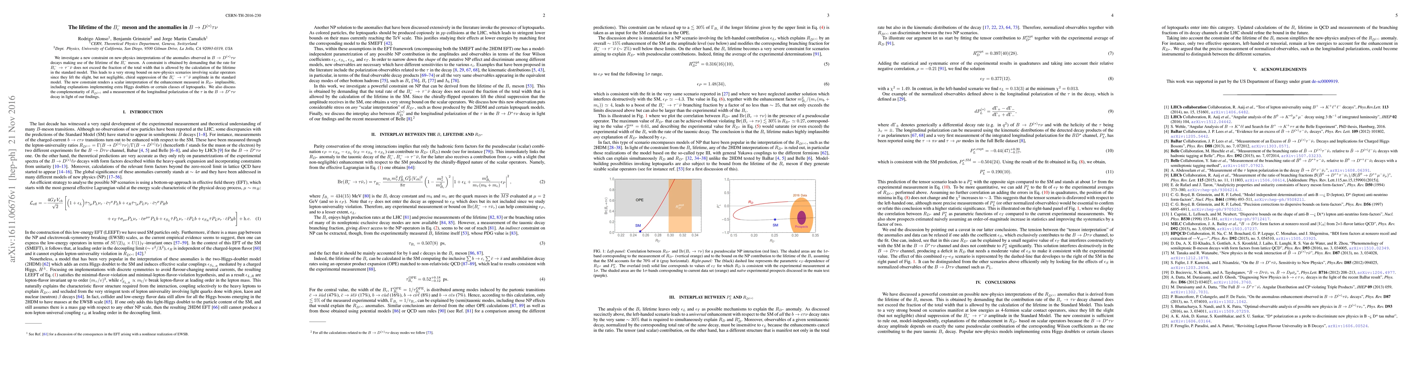 This research imposes a new constraint on new-physics interpretations of anomalies in $B\to D^{(*)}\tau\nu$ decays using the $B_c^-$ meson's lifetime, ruling out scalar operator explanations for the observed enhancement in $R_{D^*}$. It also highlights the complementary role of $R_{D^{(*)}}$ measurements and $\tau$ polarization in $B\to D^*\tau\nu$ decays.