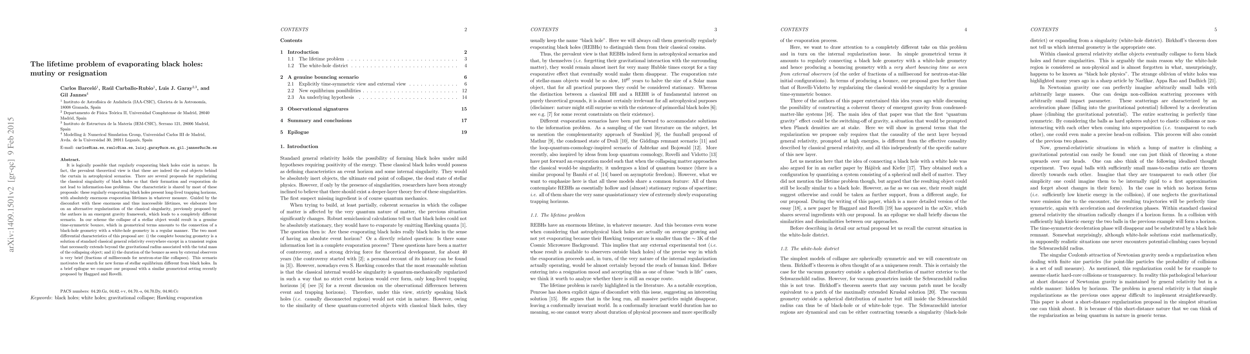 It is logically possible that regularly evaporating black holes exist in nature. In fact, the prevalent theoretical view is that these are indeed the real objects behind the curtain in astrophysical scenarios. There are several proposals for regularizing the classical singularity of black holes so that their formation and evaporation do not lead to information-loss problems. One characteristic is shared by most of these proposals: these regularly evaporating black holes present long-lived trapping horizons, with absolutely enormous evaporation lifetimes in whatever measure. Guided by the discomfort with these enormous and thus inaccessible lifetimes, we elaborate here on an alternative regularization of the classical singularity, previously proposed by the authors in an emergent gravity framework, which leads to a completely different scenario. In our scheme the collapse of a stellar object would result in a genuine time-symmetric bounce, which in geometrical terms amounts to the connection of a black-hole geometry with a white-hole geometry in a regular manner. The two most differential characteristics of this proposal are: i) the complete bouncing geometry is a solution of standard classical general relativity everywhere except in a transient region that necessarily extends beyond the gravitational radius associated with the total mass of the collapsing object; and ii) the duration of the bounce as seen by external observers is very brief (fractions of milliseconds for neutron-star-like collapses). This scenario motivates the search for new forms of stellar equilibrium different from black holes. In a brief epilogue we compare our proposal with a similar geometrical setting recently proposed by Haggard and Rovelli.