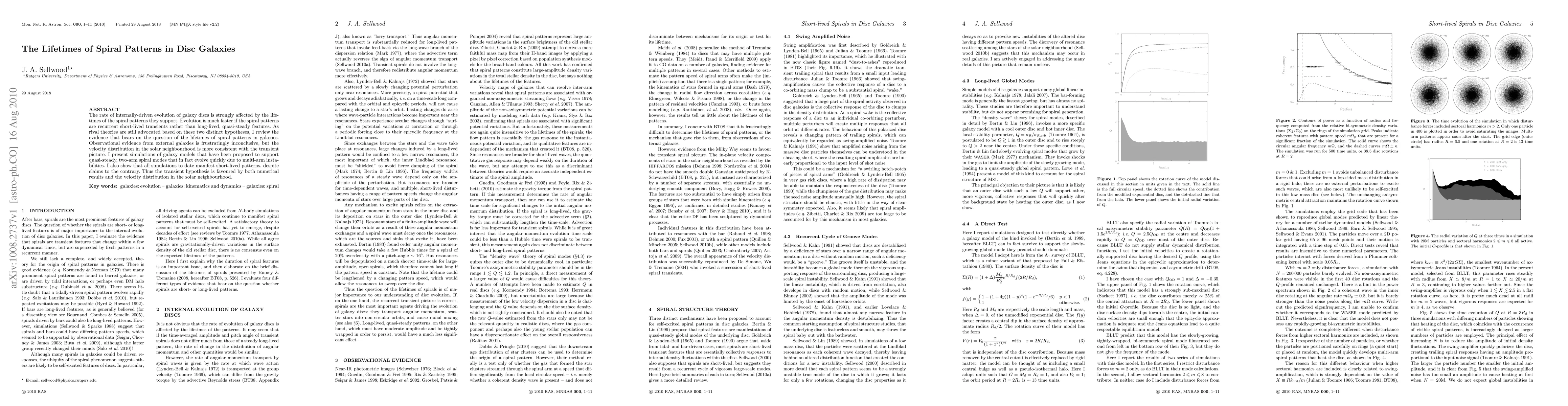 Research suggests that spiral patterns in galaxy discs have short lifetimes, contradicting a long-held theory, with simulations supporting the idea that these patterns evolve quickly due to internal instabilities.