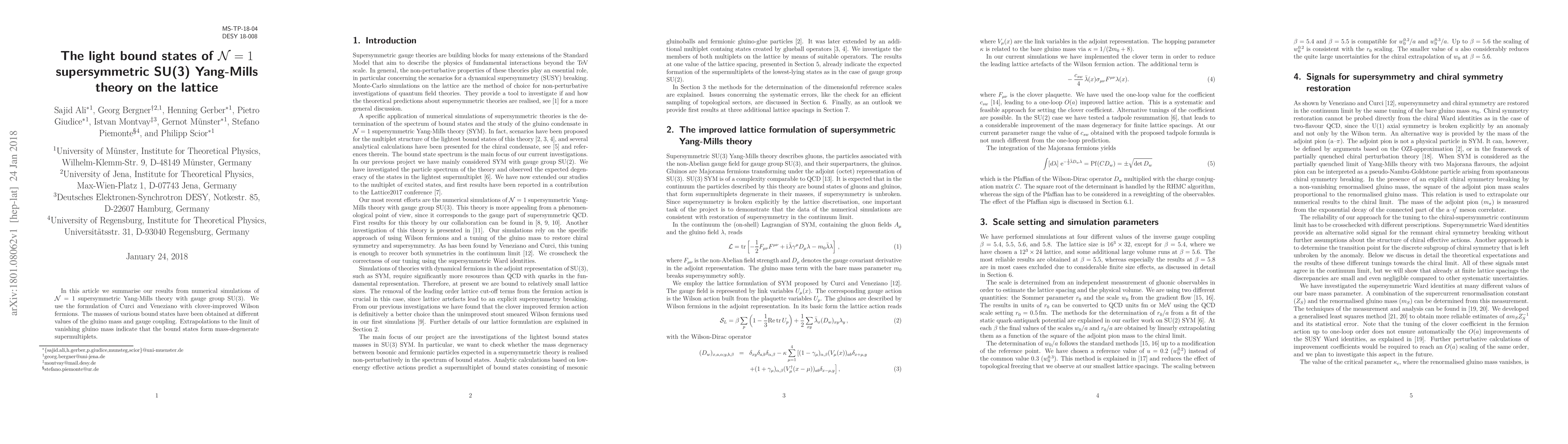 Two-line summary: This paper presents results from lattice simulations of $\mathcal{N}=1$ supersymmetric SU(3) Yang-Mills theory using Curci-Veneziano formulation and clover-improved fermions, revealing mass-degenerate supermultiplets for light bound states when the gluino mass approaches zero.