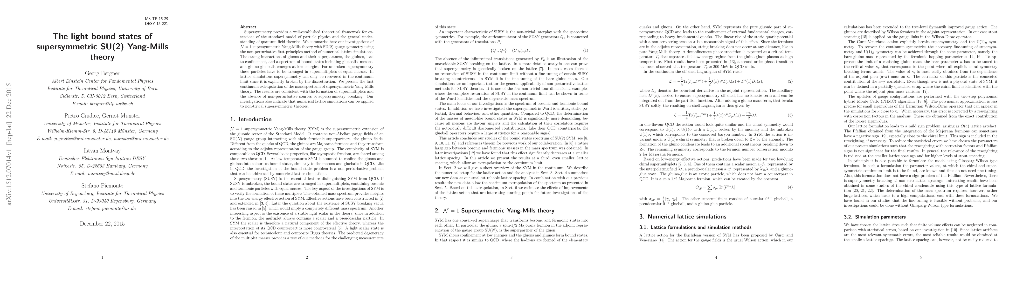 Supersymmetry provides a well-established theoretical framework for extensions of the standard model of particle physics and the general understanding of quantum field theories. We summarise here our investigations of N=1 supersymmetric Yang-Mills theory with SU(2) gauge symmetry using the non-perturbative first-principles method of numerical lattice simulations. The strong interactions of gluons and their superpartners, the gluinos, lead to confinement, and a spectrum of bound states including glueballs, mesons, and gluino-glueballs emerges at low energies. For unbroken supersymmetry these particles have to be arranged in supermultiplets of equal masses. In lattice simulations supersymmetry can only be recovered in the continuum limit since it is explicitly broken by the discretisation. We present the first continuum extrapolation of the mass spectrum of supersymmetric Yang-Mills theory. The results are consistent with the formation of supermultiplets and the absence of non-perturbative sources of supersymmetry breaking. Our investigations also indicate that numerical lattice simulations can be applied to non-trivial supersymmetric theories.