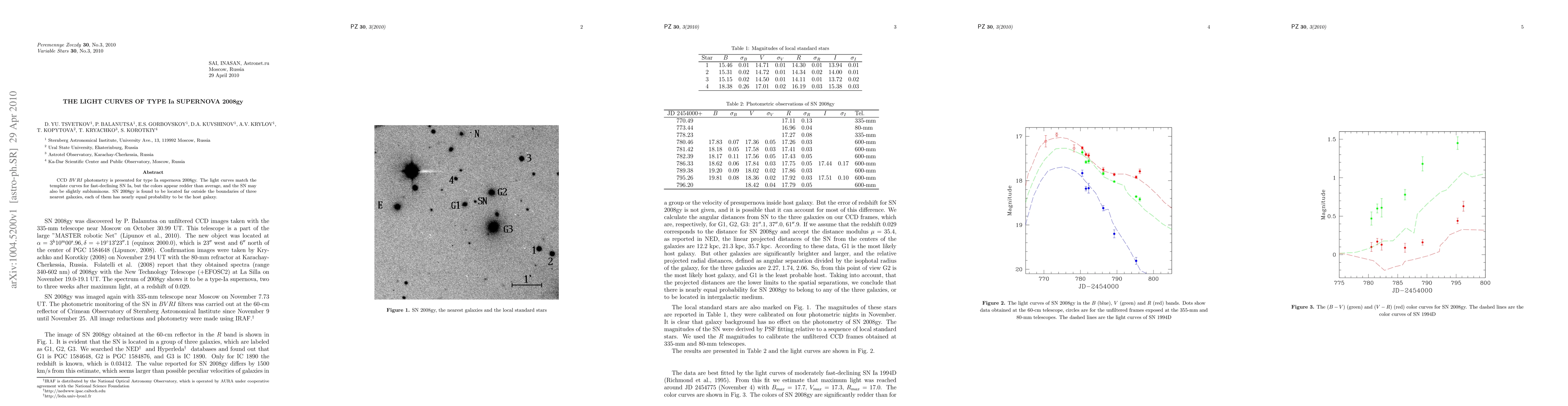 CCD BVRI photometry is presented for type Ia supernova 2008gy. The light curves match the template curves for fast-declining SN Ia, but the colors appear redder than average, and the SN may also be slightly subluminous. SN 2008gy is found to be located far outside the boundaries of three nearest galaxies, each of them has nearly equal probability to be the host galaxy.