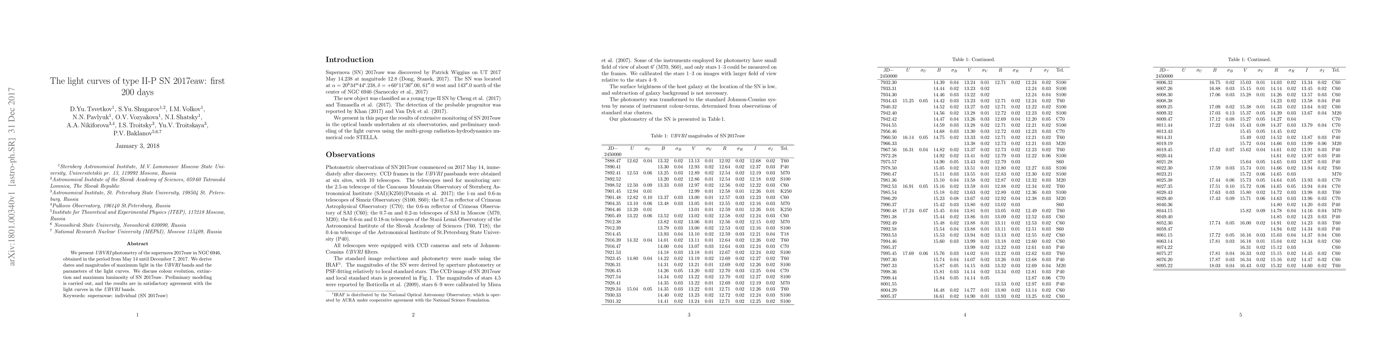 This paper presents UBVRI photometry of SN 2017eaw, analyzing its light curves over the first 200 days, and discusses color evolution, extinction, and maximum luminosity in agreement with preliminary modeling results.