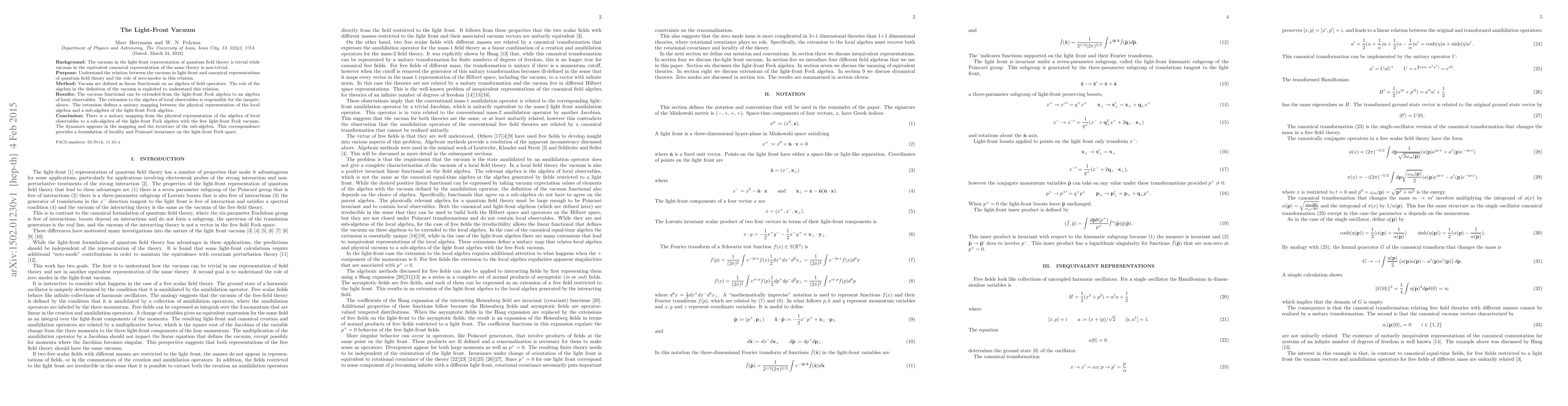 The paper explores the relationship between the trivial vacuum in light-front quantum field theory and the non-trivial vacuum in canonical representation, revealing a unitary mapping between the two through the extension of the vacuum functional to local observables. This mapping elucidates locality and Poincaré invariance on the light-front Fock space.