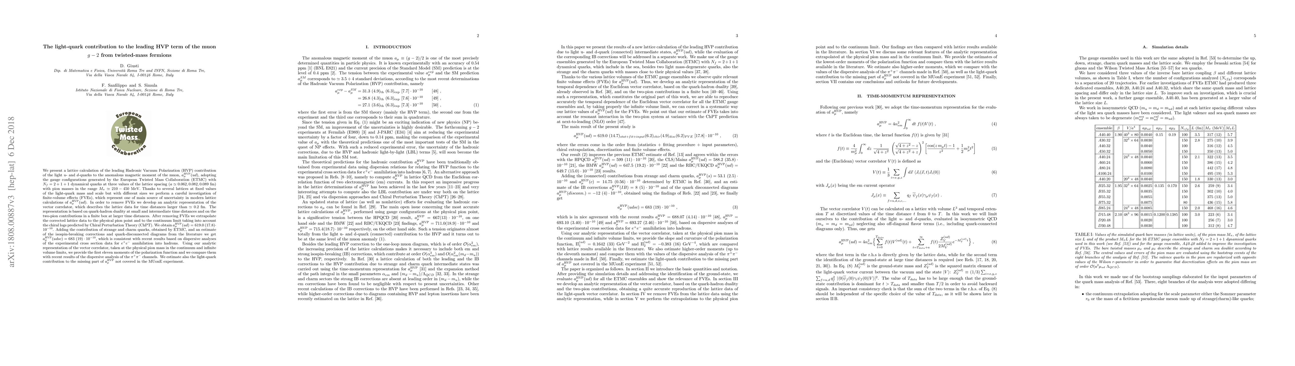 This paper reports a lattice QCD calculation of the light-quark contribution to the leading Hadronic Vacuum Polarization term in the muon's anomalous magnetic moment, obtaining $a_\mu^{\rm HVP}(ud) = 619.0~(17.8) \cdot 10^{-10}$. The study includes an extrapolation to the physical pion mass and continuum limit, and it provides the first eleven moments of the polarization function.