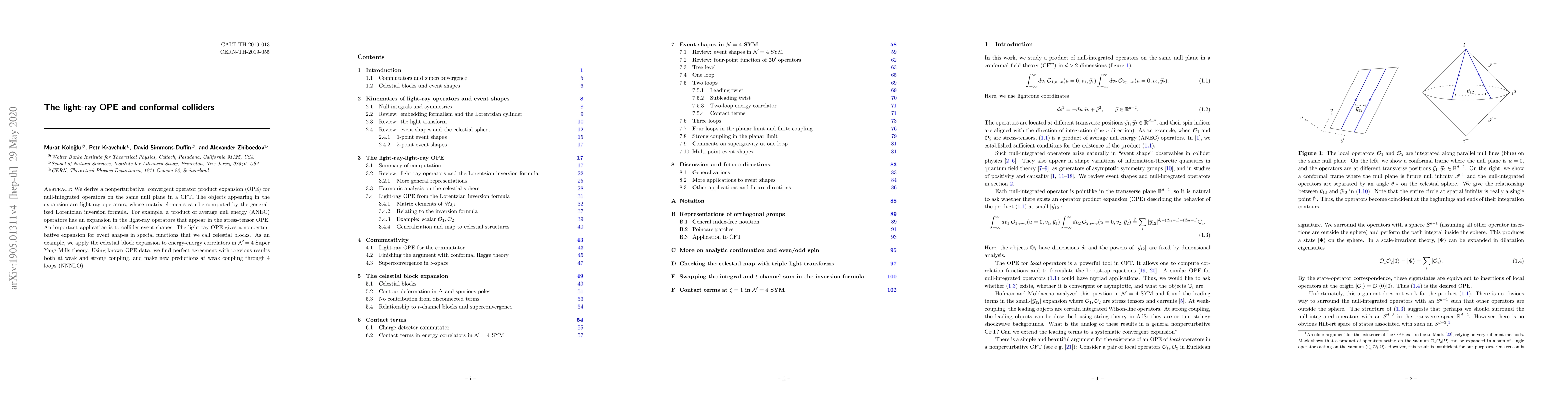 We derive a nonperturbative, convergent operator product expansion (OPE) for null-integrated operators on the same null plane in a CFT. The objects appearing in the expansion are light-ray operators, whose matrix elements can be computed by the generalized Lorentzian inversion formula. For example, a product of average null energy (ANEC) operators has an expansion in the light-ray operators that appear in the stress-tensor OPE. An important application is to collider event shapes. The light-ray OPE gives a nonperturbative expansion for event shapes in special functions that we call celestial blocks. As an example, we apply the celestial block expansion to energy-energy correlators in N=4 Super Yang-Mills theory. Using known OPE data, we find perfect agreement with previous results both at weak and strong coupling, and make new predictions at weak coupling through 4 loops (NNNLO).