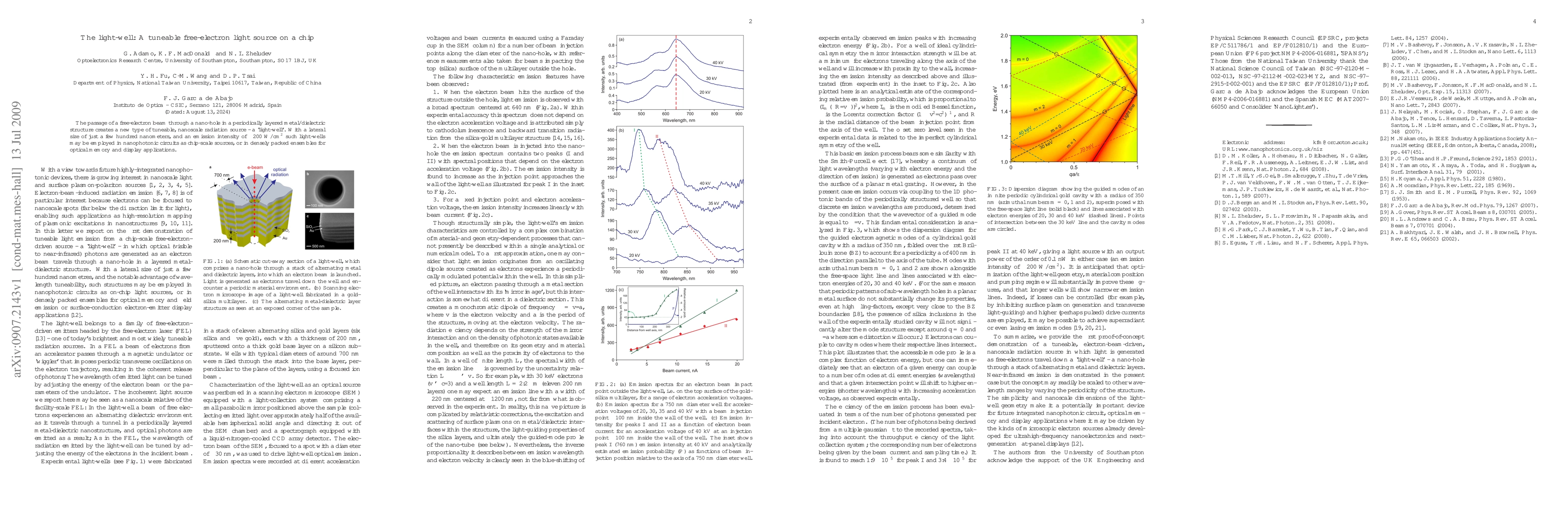 Summary: A nanoscale "light-well" generated by directing a free-electron beam through a nano-hole in a layered metal/dielectric structure offers a tuneable, chip-scale radiation source with potential applications in nanophotonics and optical memory/display technologies.