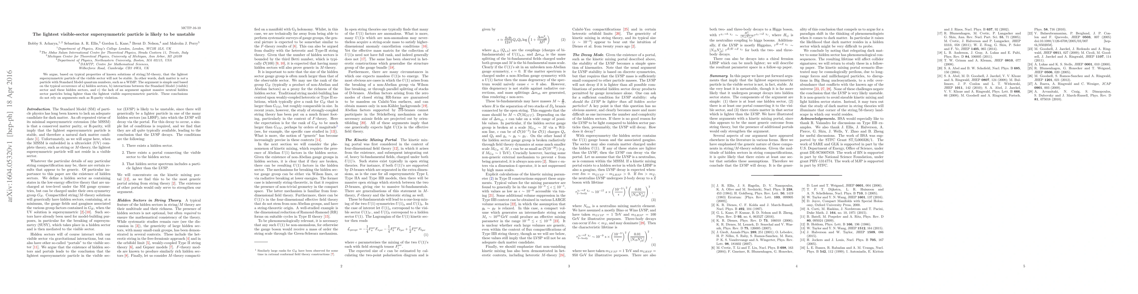 This paper argues that the lightest visible-sector supersymmetric particle is likely unstable due to interactions with hidden sectors, implying that dark matter is not a Standard Model particle like a WIMP. The conclusion is based on typical properties in string/M-theory without relying on R-parity violation.