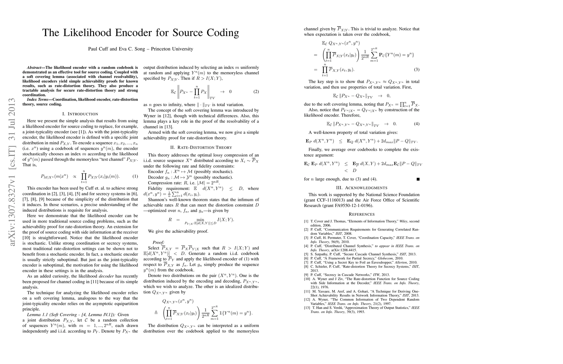 The research introduces a new technique for analyzing the likelihood encoder, which relies on the soft covering lemma.